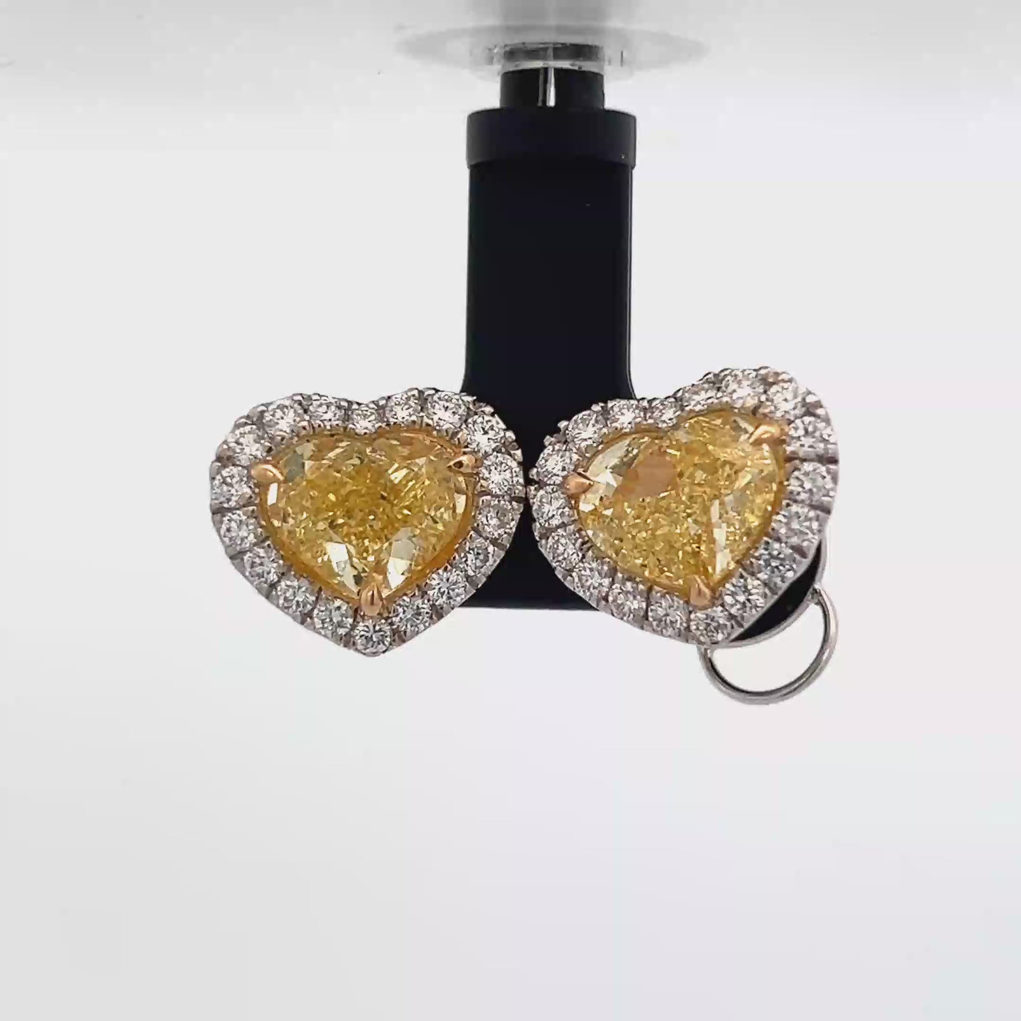 Lady's White 18 Karat Halo Heart Shape Earrings one = 3.01ct Heart VVS2 Fancy Intense Yellow Diamond gia cert #6455615497