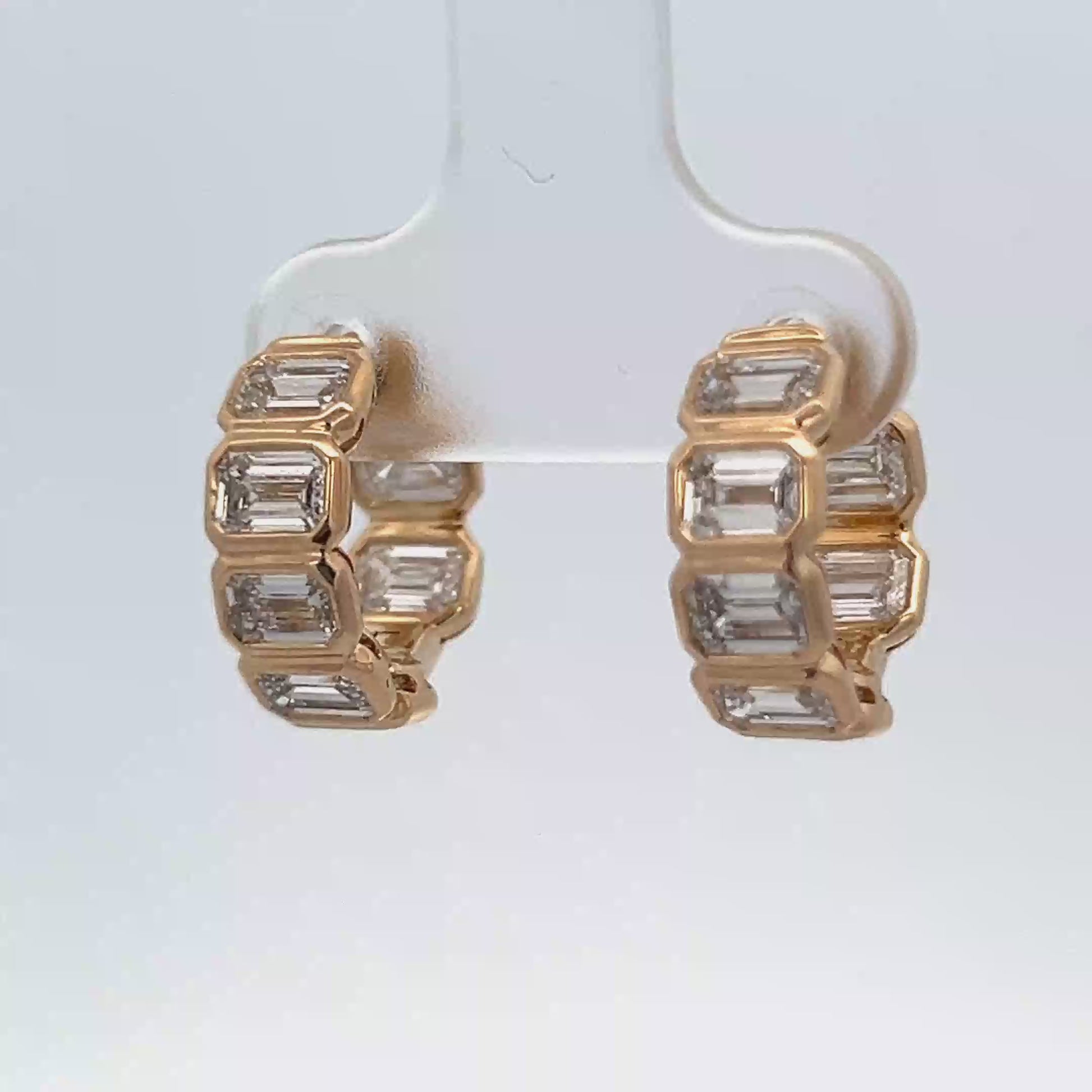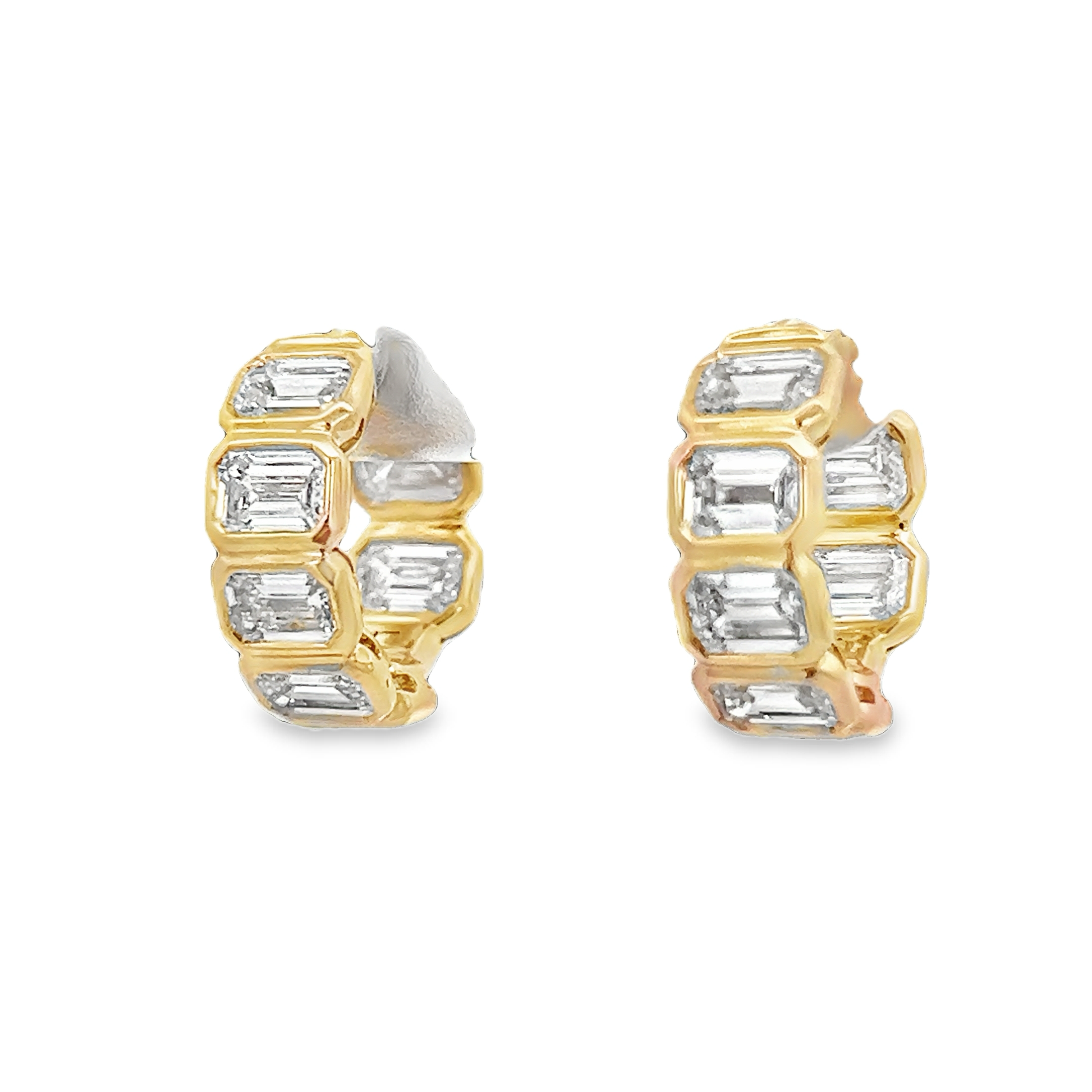 Lady's Yellow 14 Karat Insideout Lab Grown Diamond Huggies Earrings With 14=4.23Tw Emerald E Vs2 Diamonds (4.5gr)