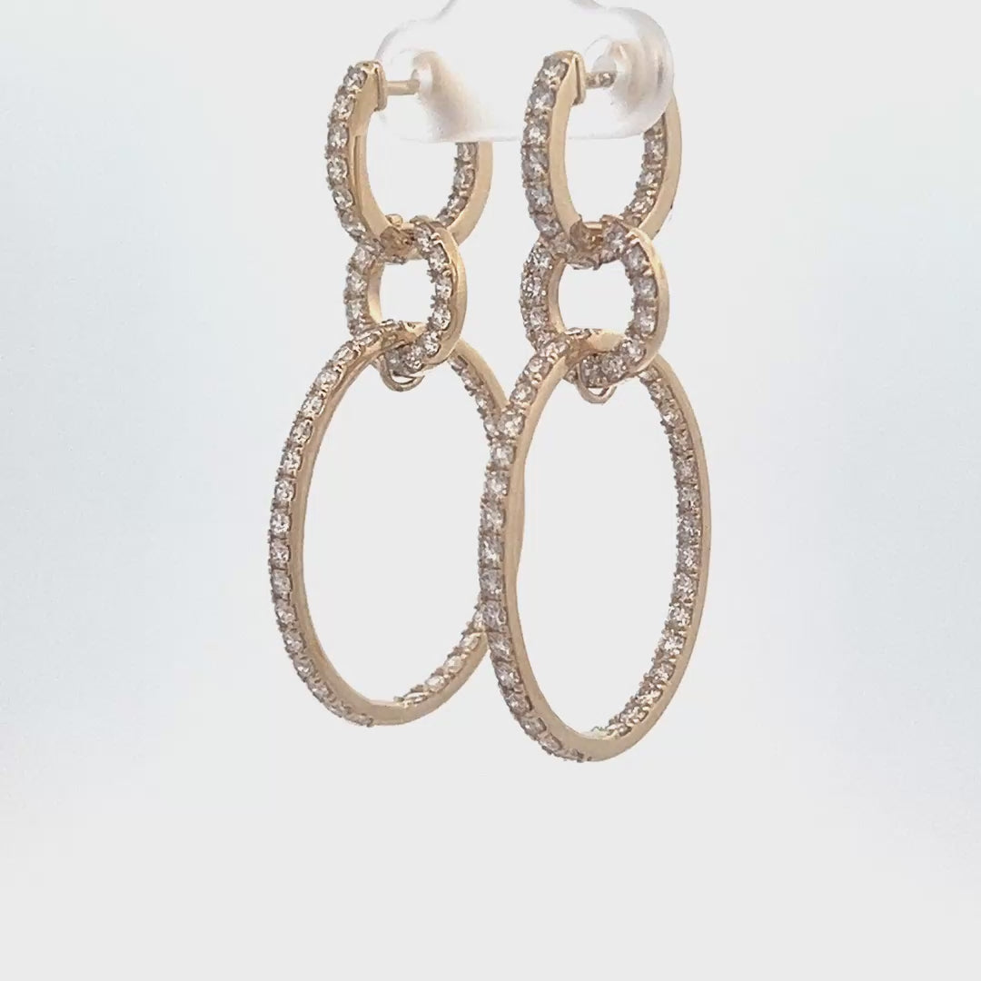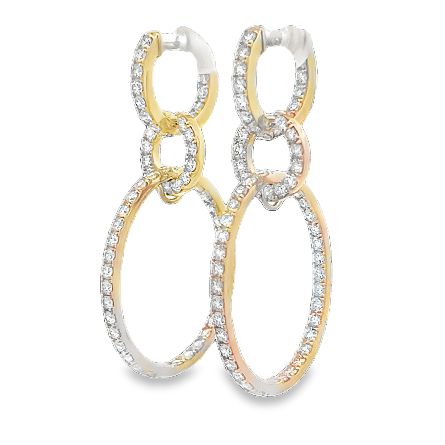 Lady's Yellow 14 Karat Oval Loop Earrings With 118=3.55Tw Round Diamonds(8.5gr)