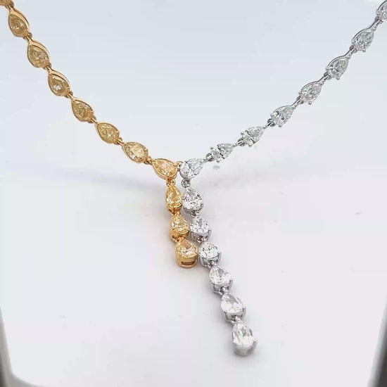 Lariat Necklace with Yellow and White Pear Diamonds