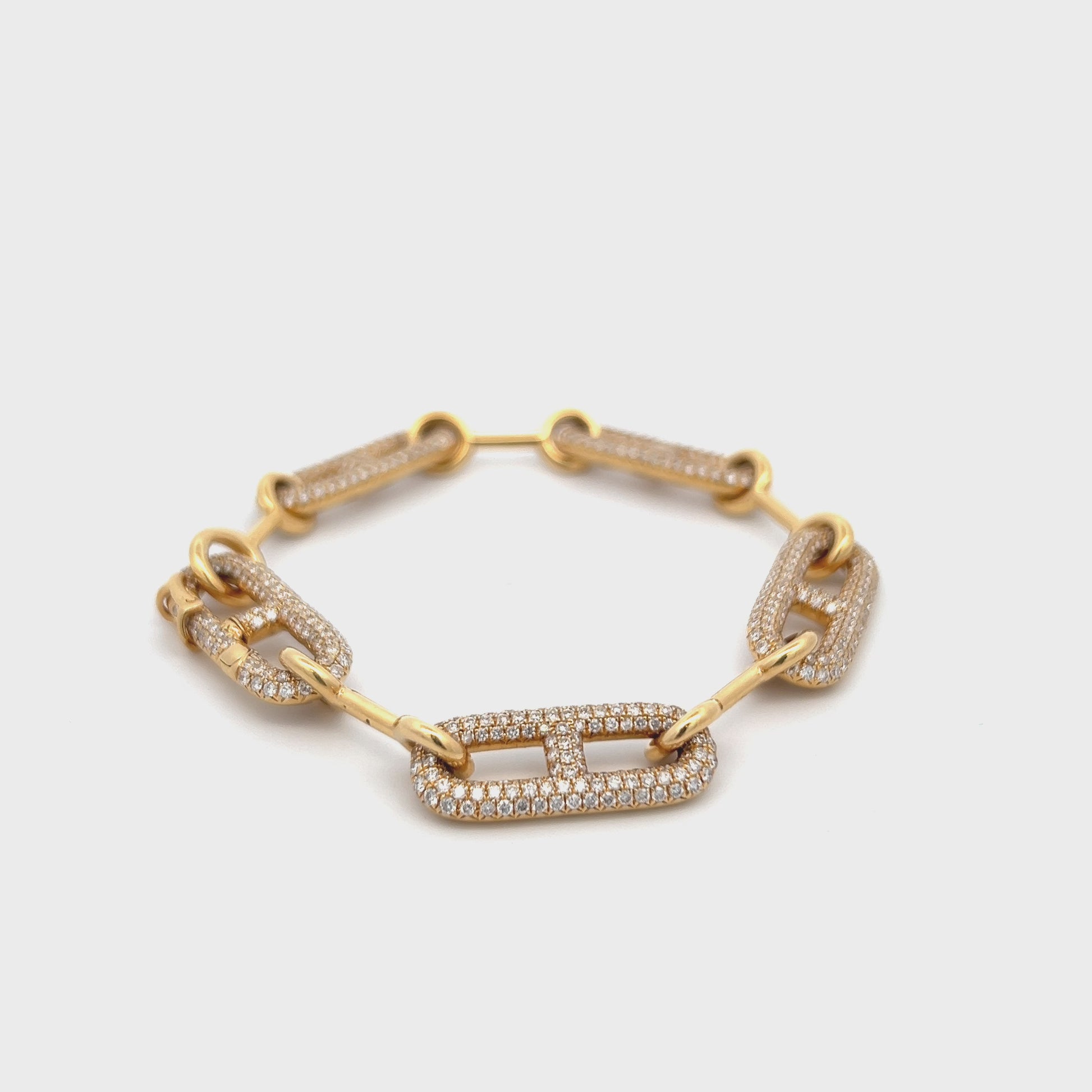 Yellow Gold 18 Karat Diamond Anchor Link Bracelet 385 (4.52tw) Round Diamonds
