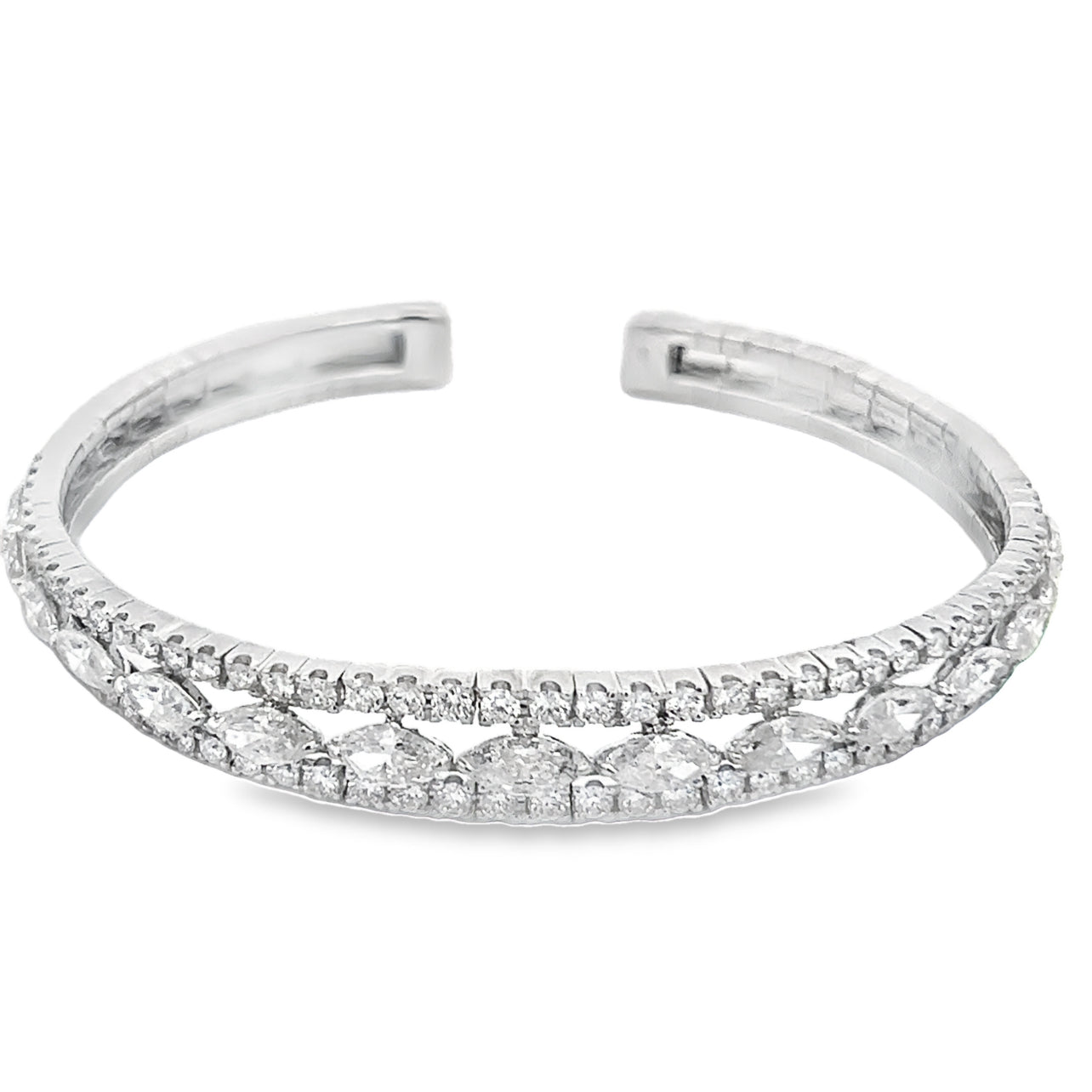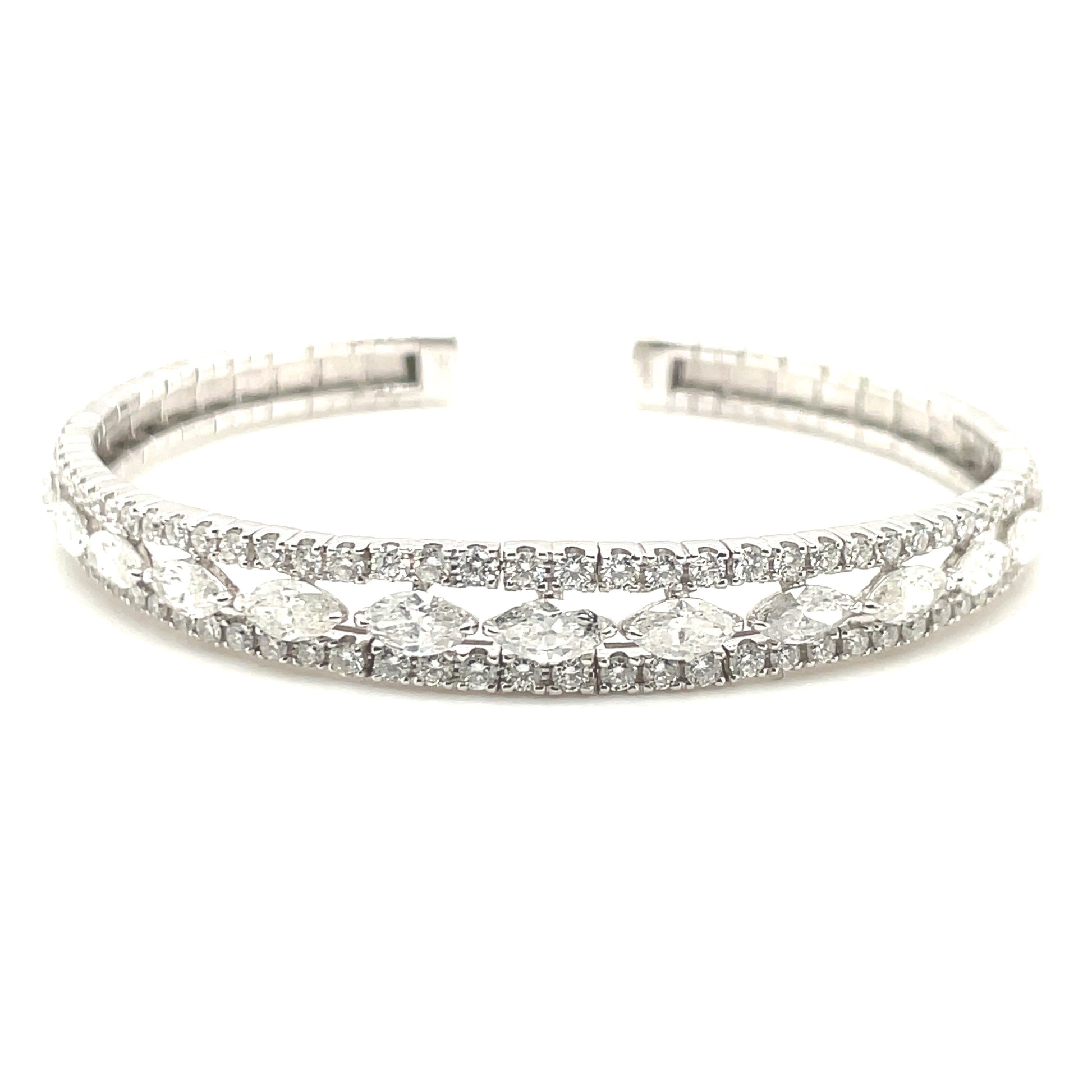 Marquis and Round Diamond Flexible Cuff Bracelet