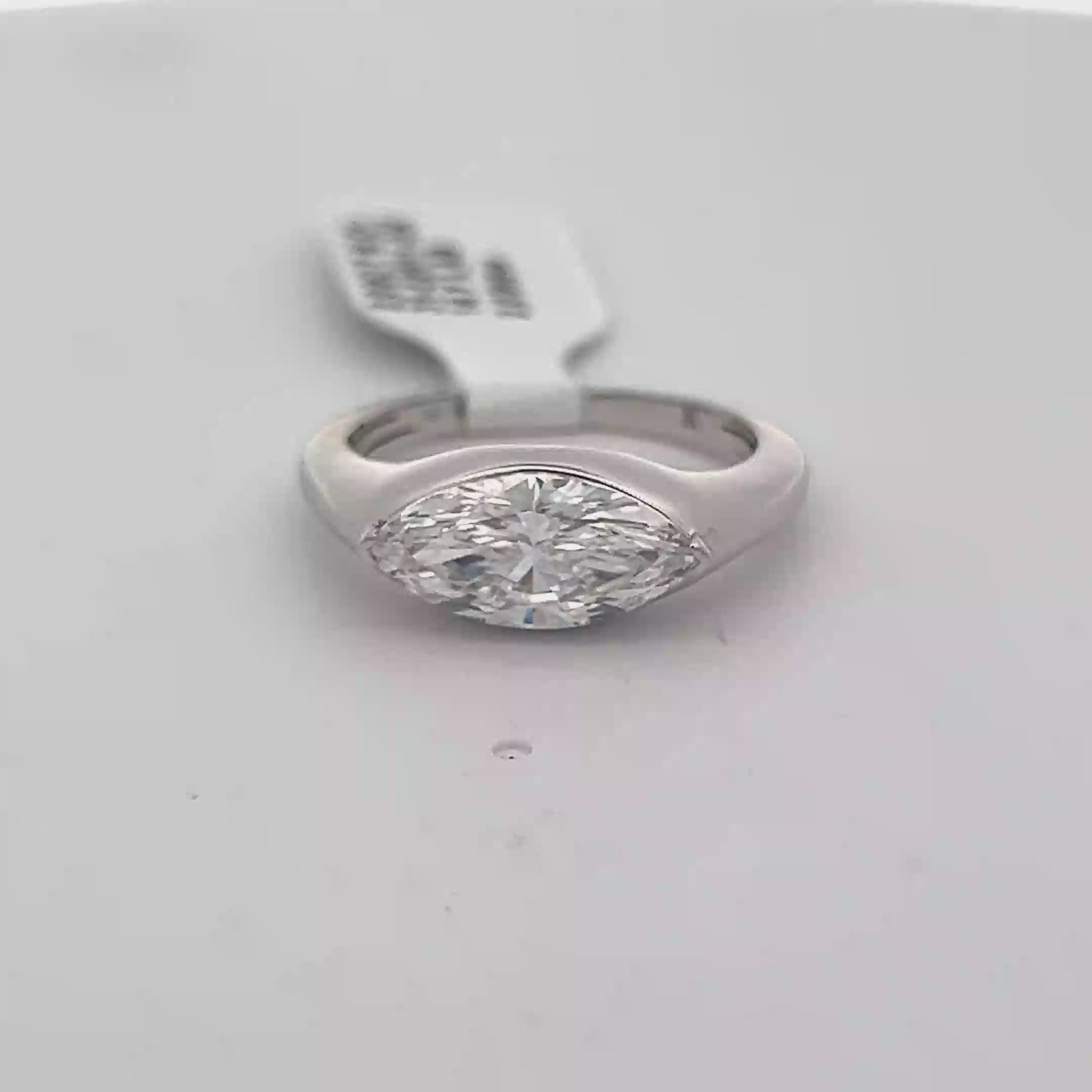 Lady's White 14 Karat Marquise Lab Grown Diamond Fashion Ring With One 2.00Ct Marquise Diamond (4gr)