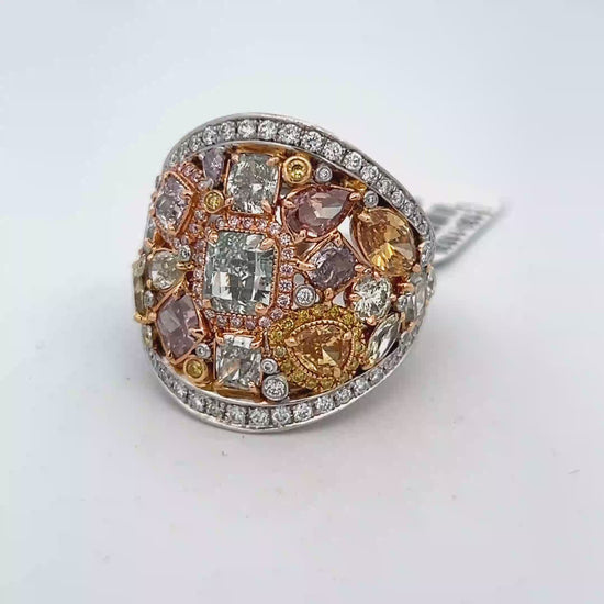 Lady's Platinum and 18kt ryg Multi Shape And Color Cigar Band With 148 = 7.33Tw Various Shapes Diamonds (20.8gr)