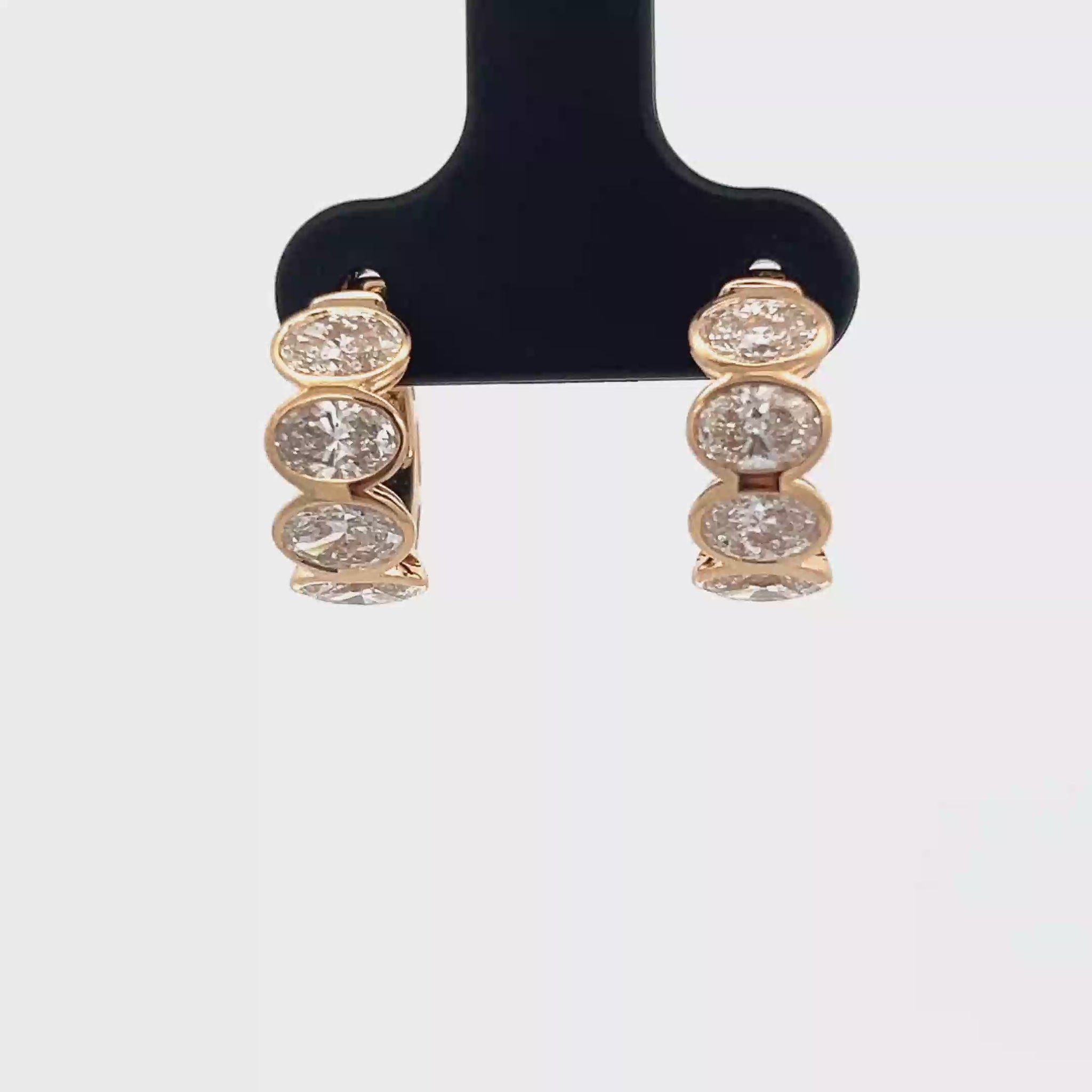 Indulge in the timeless elegance of these rose gold hoop earrings. Each earring features a sequence of brilliant oval cut diamonds, meticulously set to capture and reflect light, creating a dazzling display of luxury and sophistication. A classic design reimagined for the modern woman.