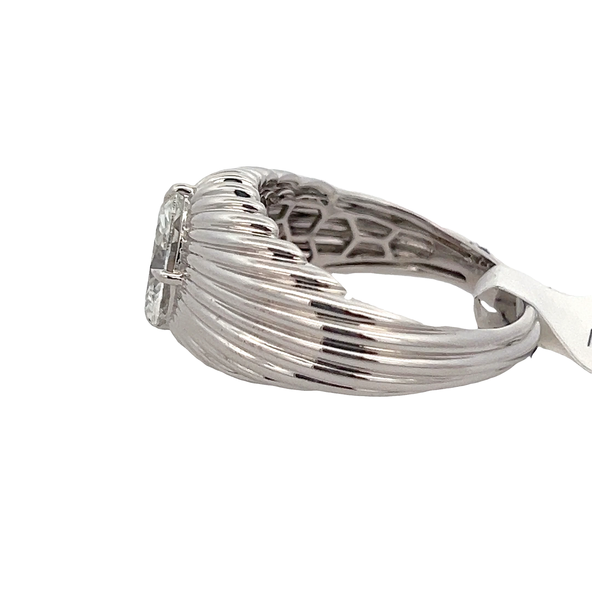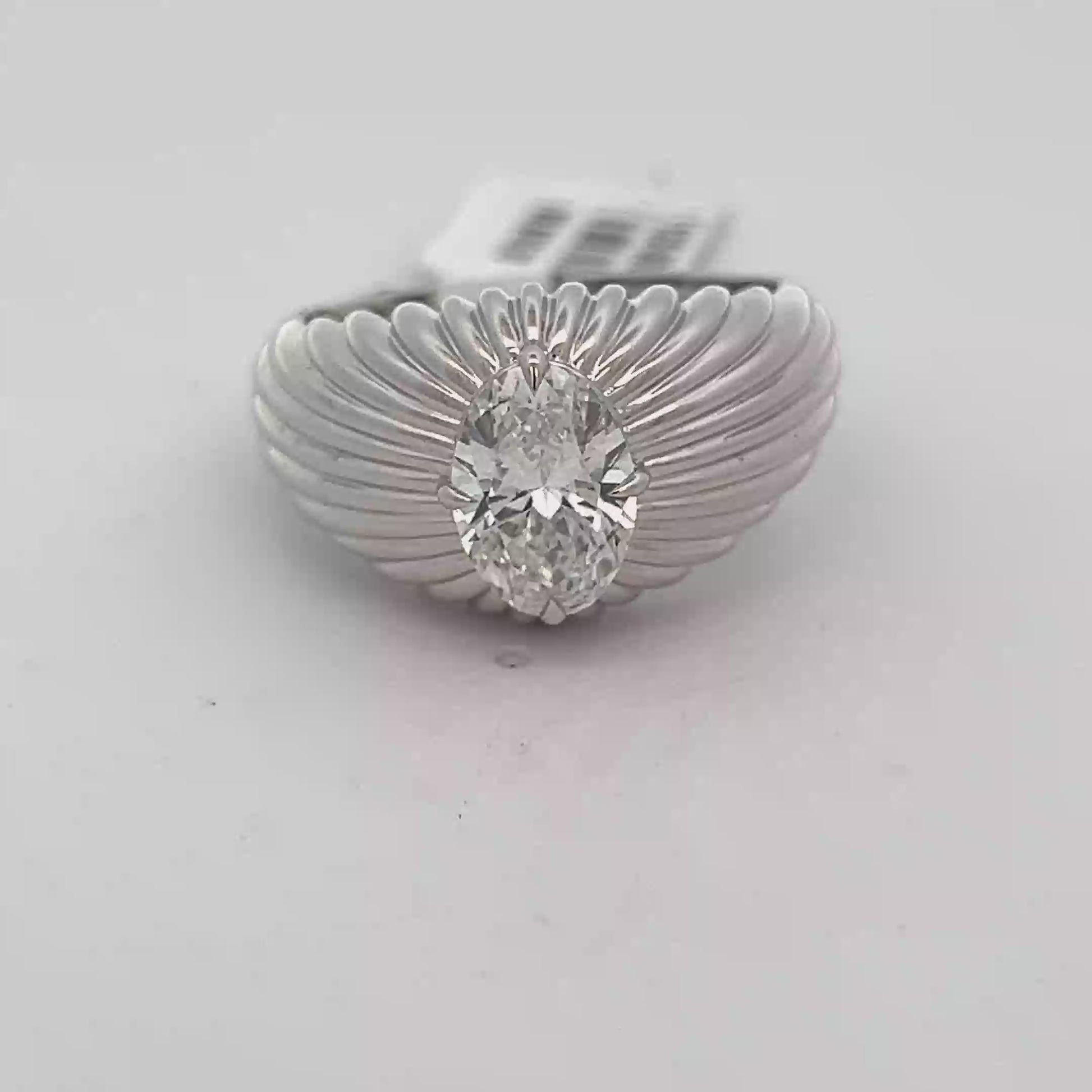Gent's White 14 Karat Lab Grown Fashion Ring Size 10 With One 2.01Ct Oval F Vs2 Diamond (9gr)