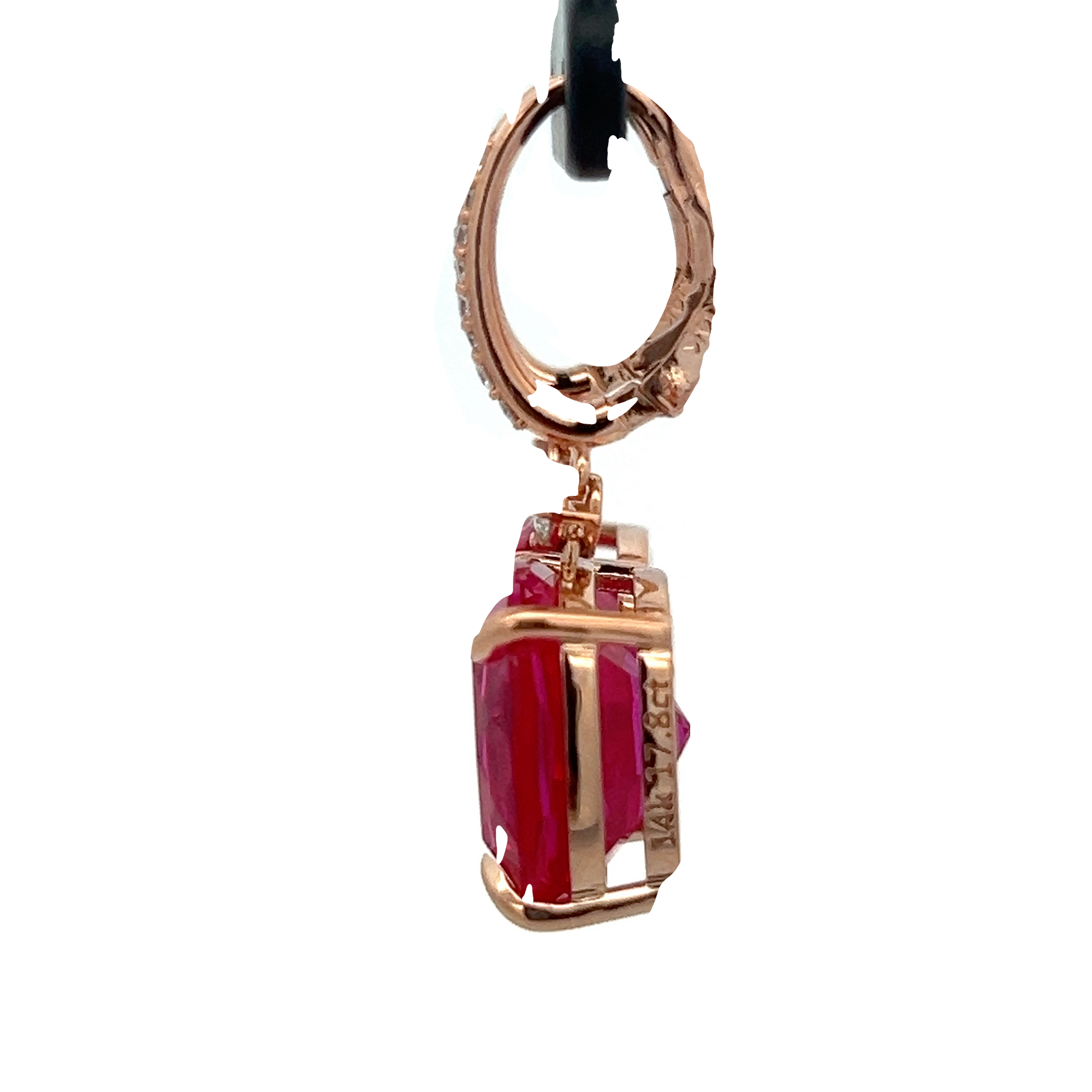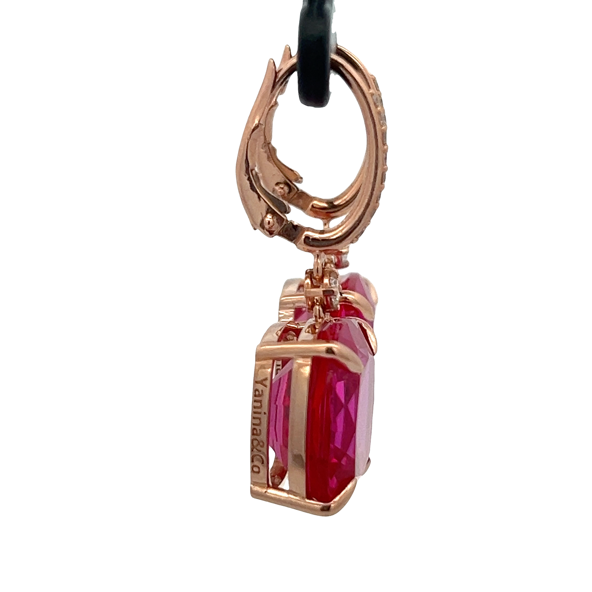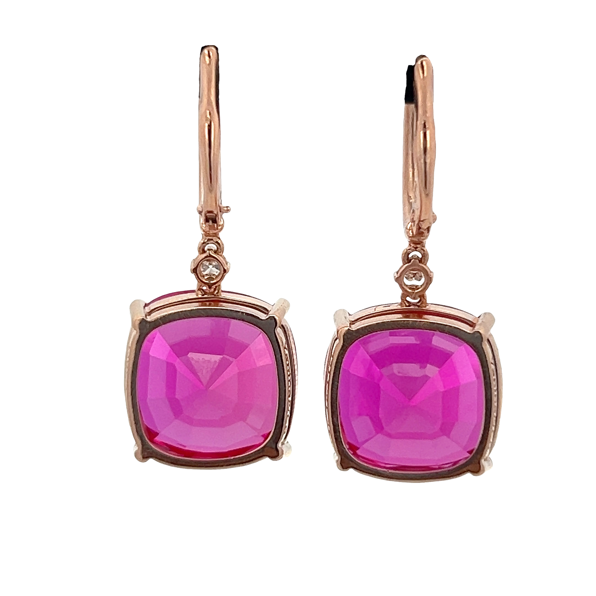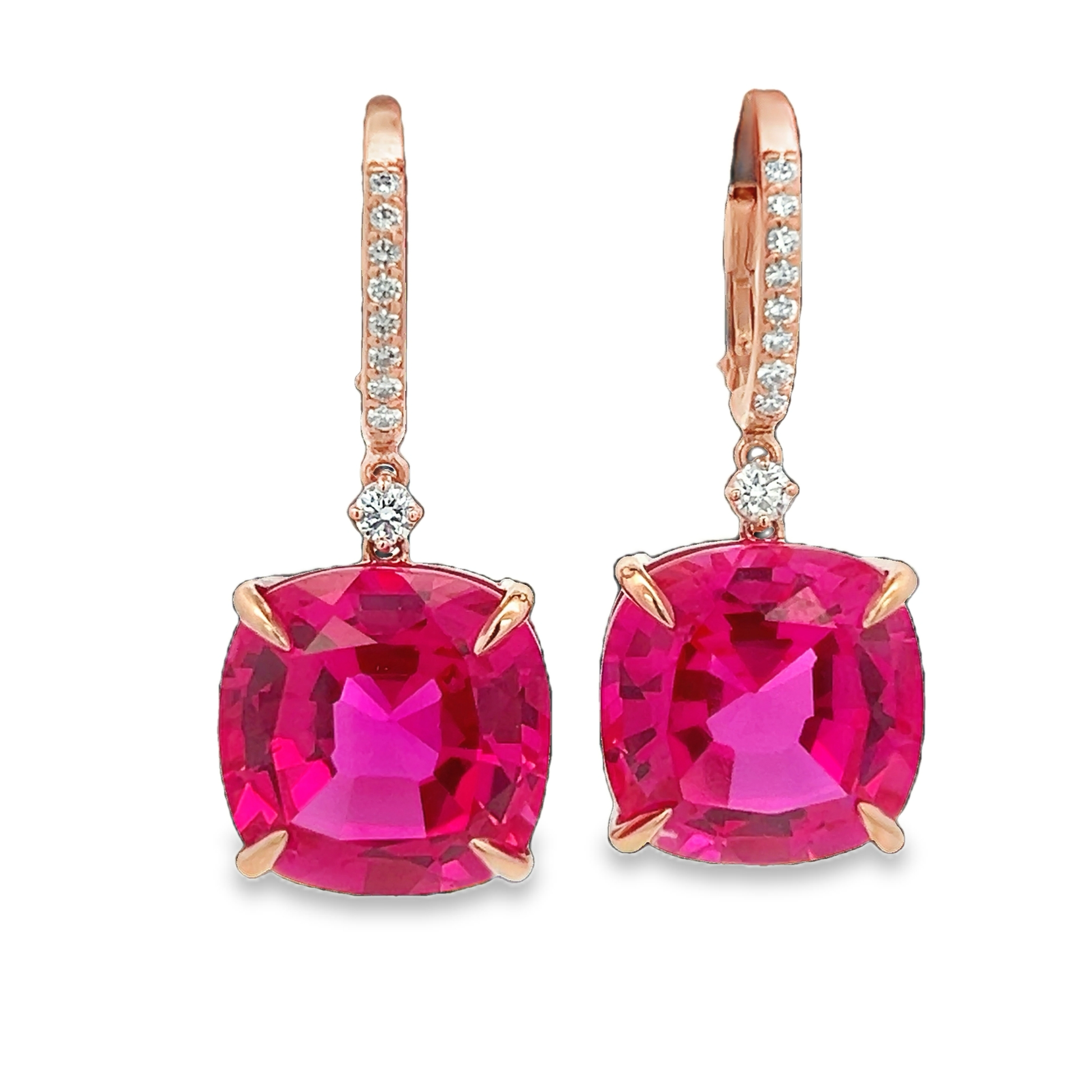Lady's Rose 14 Karat Diamond An Lab Grown Pink Tourmaline Earrings With 18=0.50Tw Round Diamonds And 2=35.91Tw Cushion Tourmalines (13.6gr)