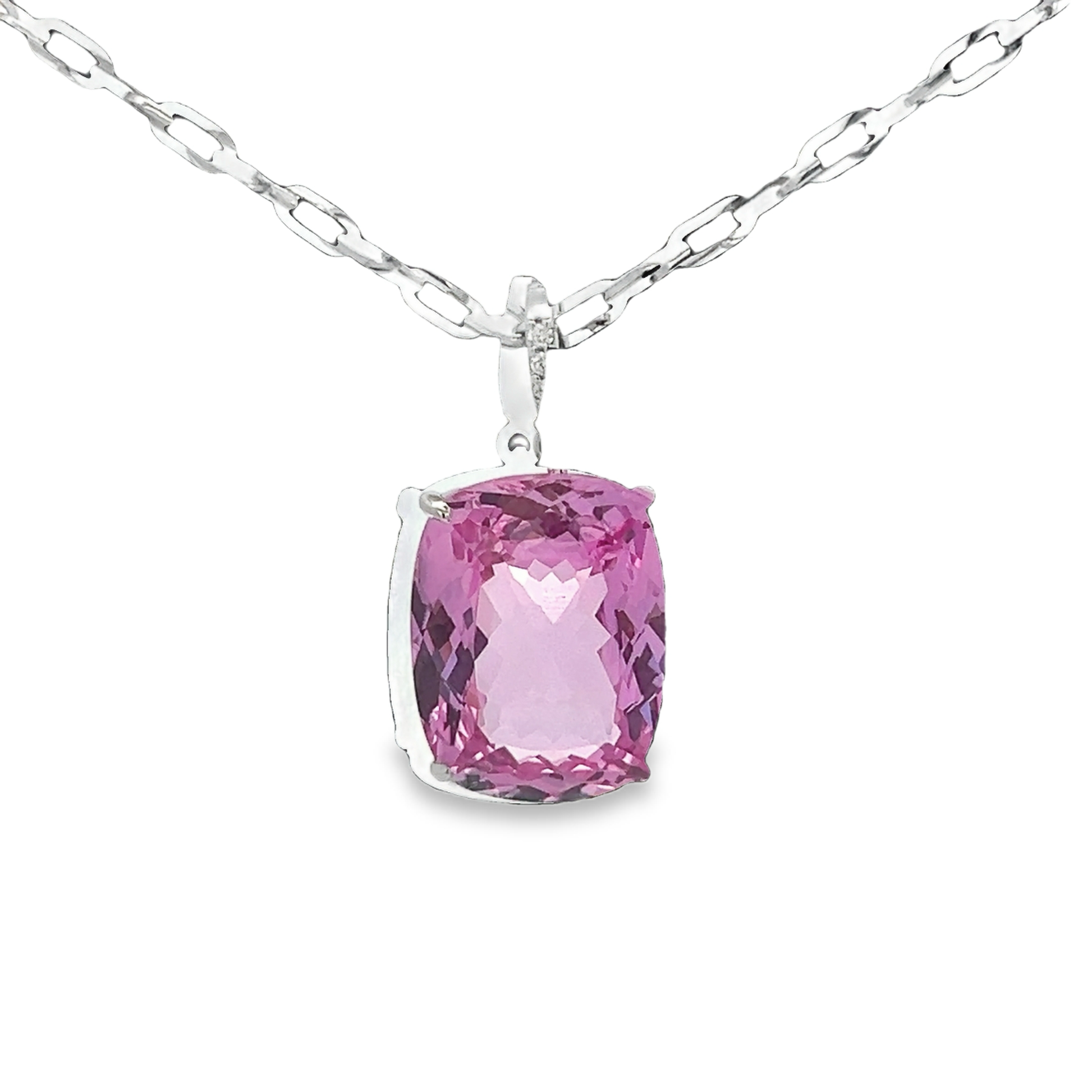 18kt white gold 26.62 ctwt pink tourmaline with .04ct diamond bail (5.2) dwt