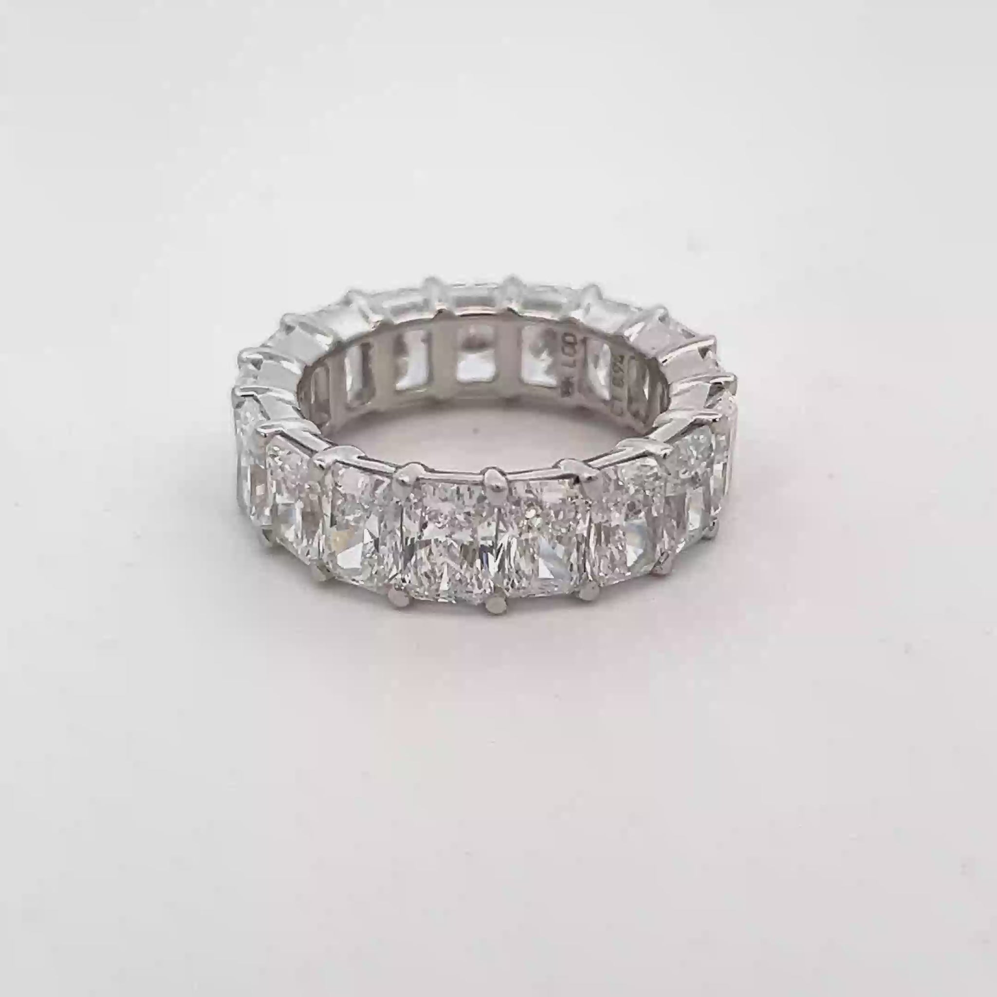 Lady's White 18 Karat Lab Grown Full Anniversary Wedding Band With 17 = 8.94Twt Radiant F Vs2 Diamonds (6.2gr)
