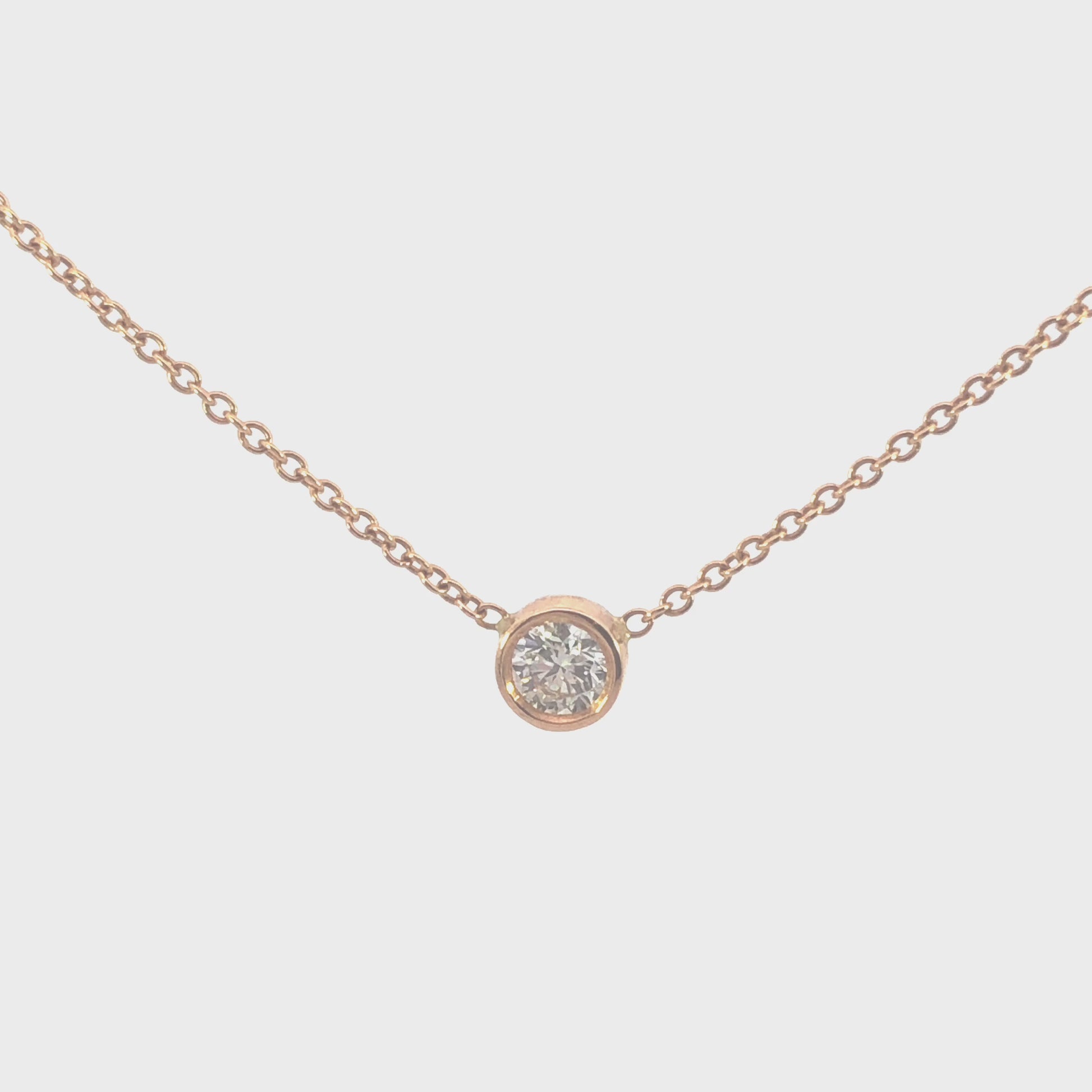 Rosé Gold 18 Karat Bezeled Diamond Necklace with One 0.40ct Round Diamond