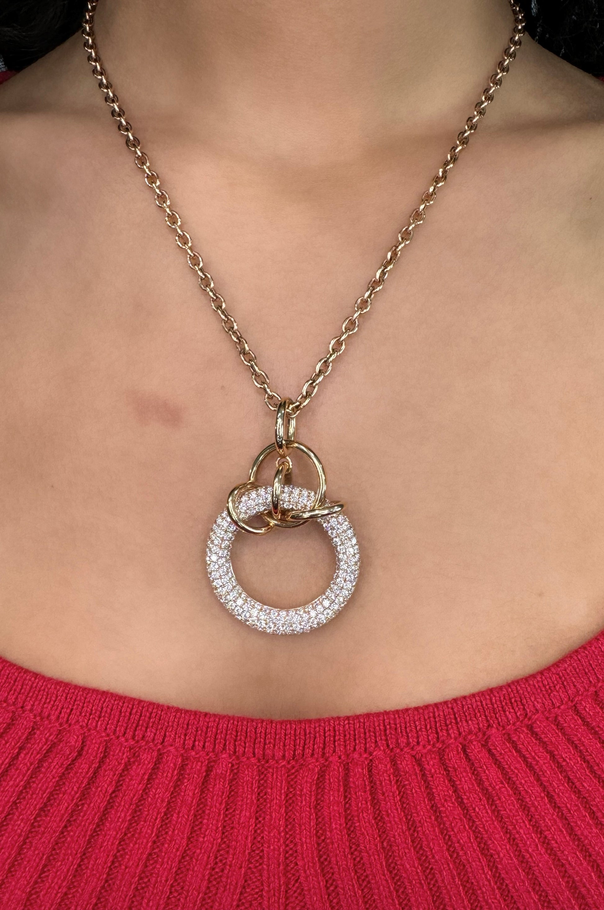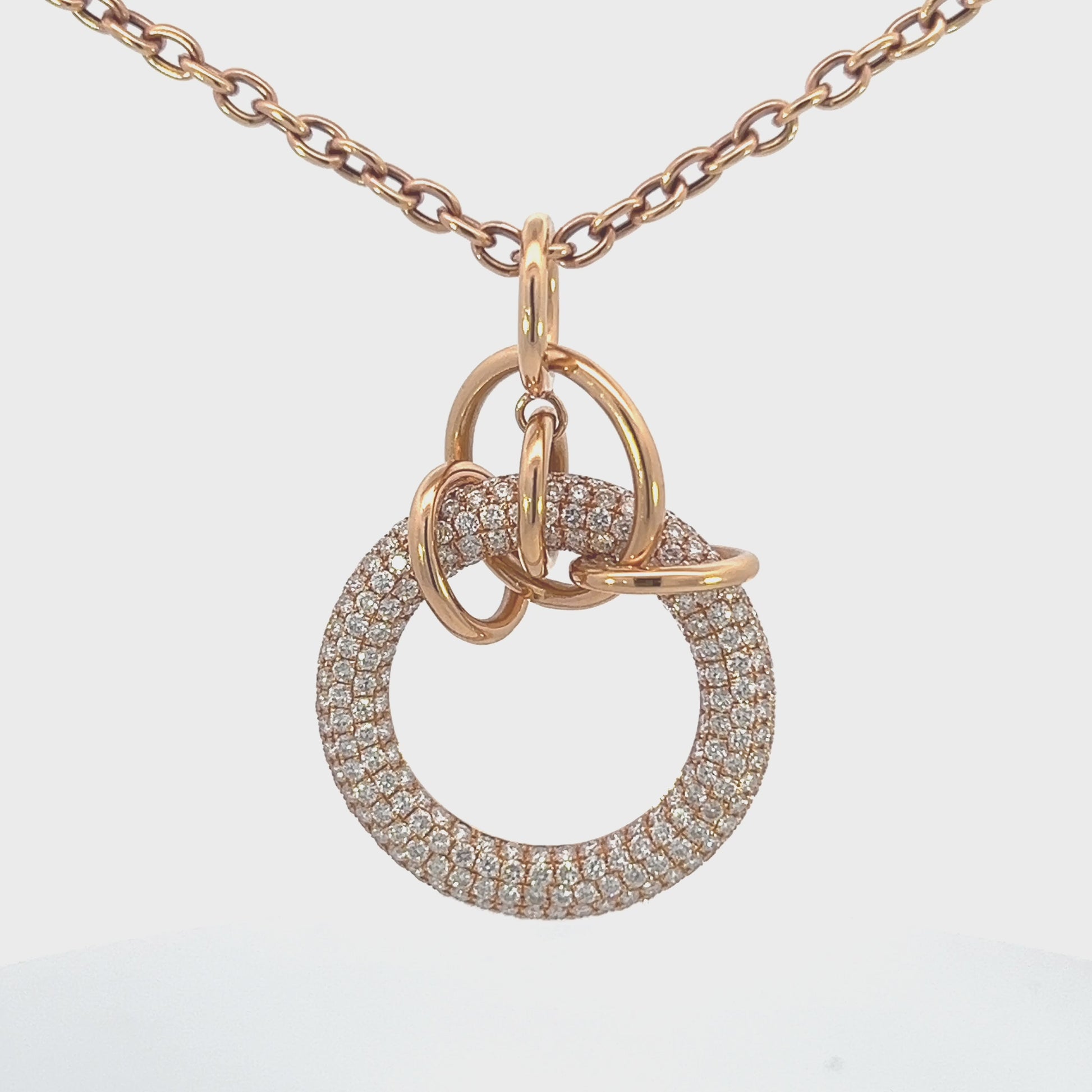 Rose Gold 18 Karat Pave Set Open Disc On A Cable Chain Necklace with 236 (4.62Tw) Round Diamonds