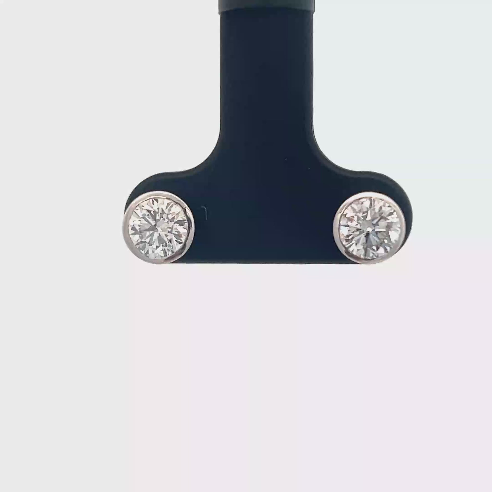 Lady's White 14 Karat Bezeled Lab Grown Diamond Studs Earrings With 2 = 1.10Twt Round Diamonds