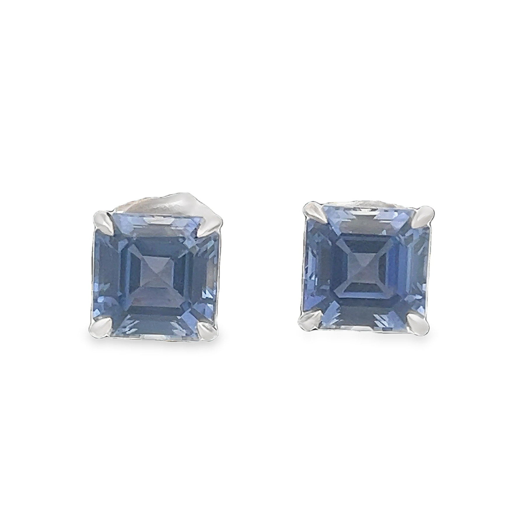Lady's White 18 Karat Compound Sapphire Earrings With 2=14.29Tw Asscher Sapphires (6.4gr)