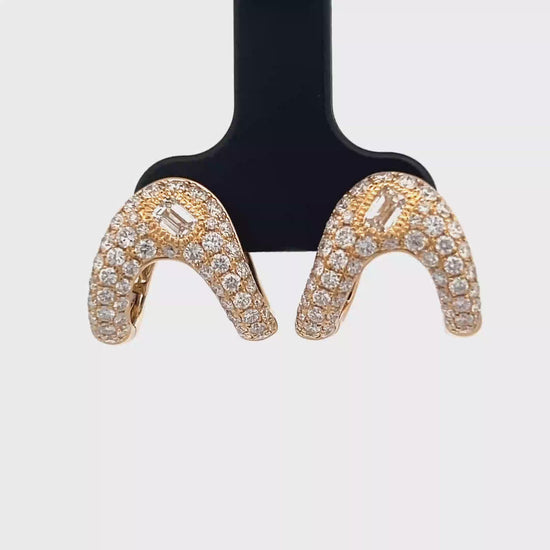 Elevate your style with these stunning rose gold hoop earrings. Crafted from radiant rose gold, these earrings feature a dazzling array of brilliant-cut diamonds, meticulously set to enhance their sparkle. With their classic design and refined elegance, these earrings are the perfect accessory for any occasion.