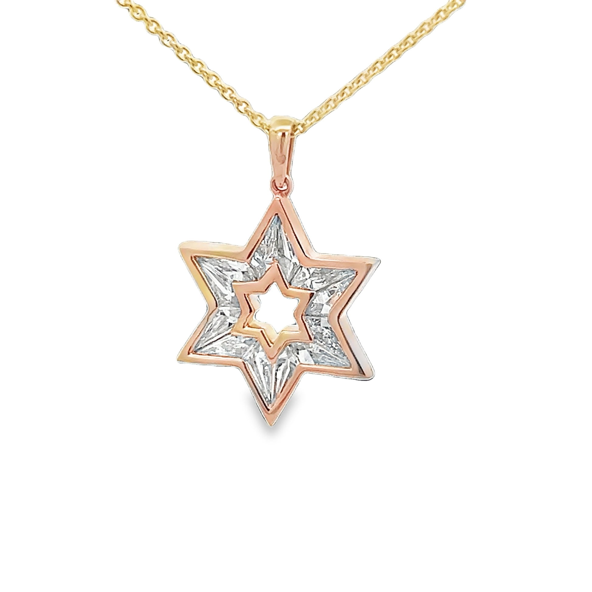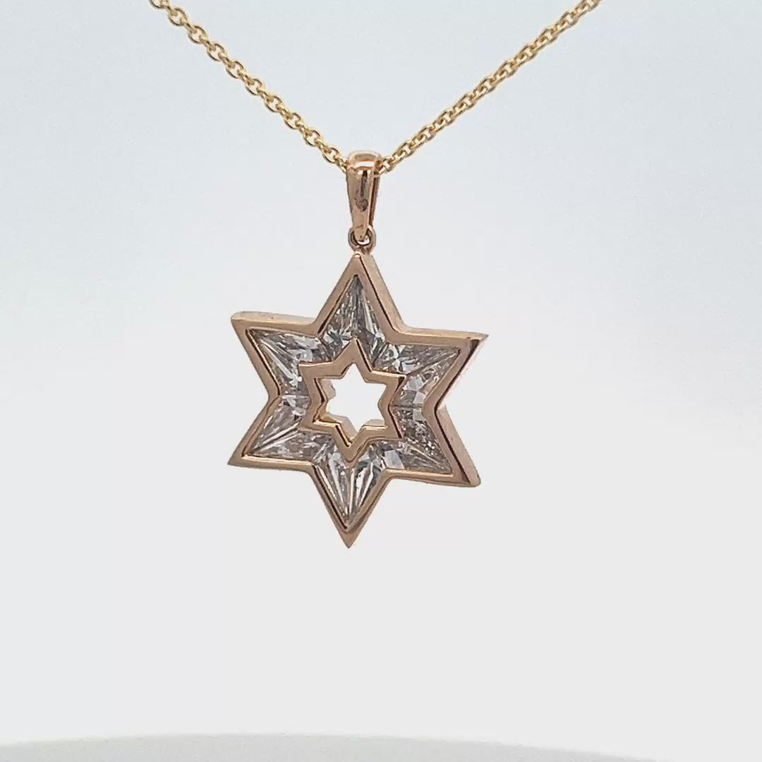 This exquisite star-shaped pendant is a masterpiece of elegance and sophistication. Crafted with precision, the pendant features a stunning geometric design that captures the light beautifully. Suspended from a delicate chain, this piece is perfect for adding a touch of glamour to any outfit.