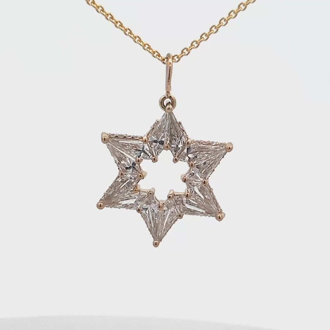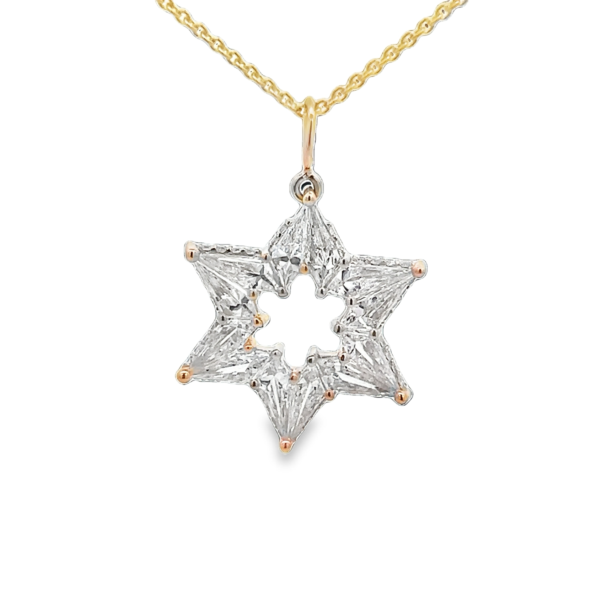 Lady's Yellow 14 Karat Star Of David Diamond Pendant With 12=2.19Tw Kite shape lab grown E/F Vs1 Diamonds