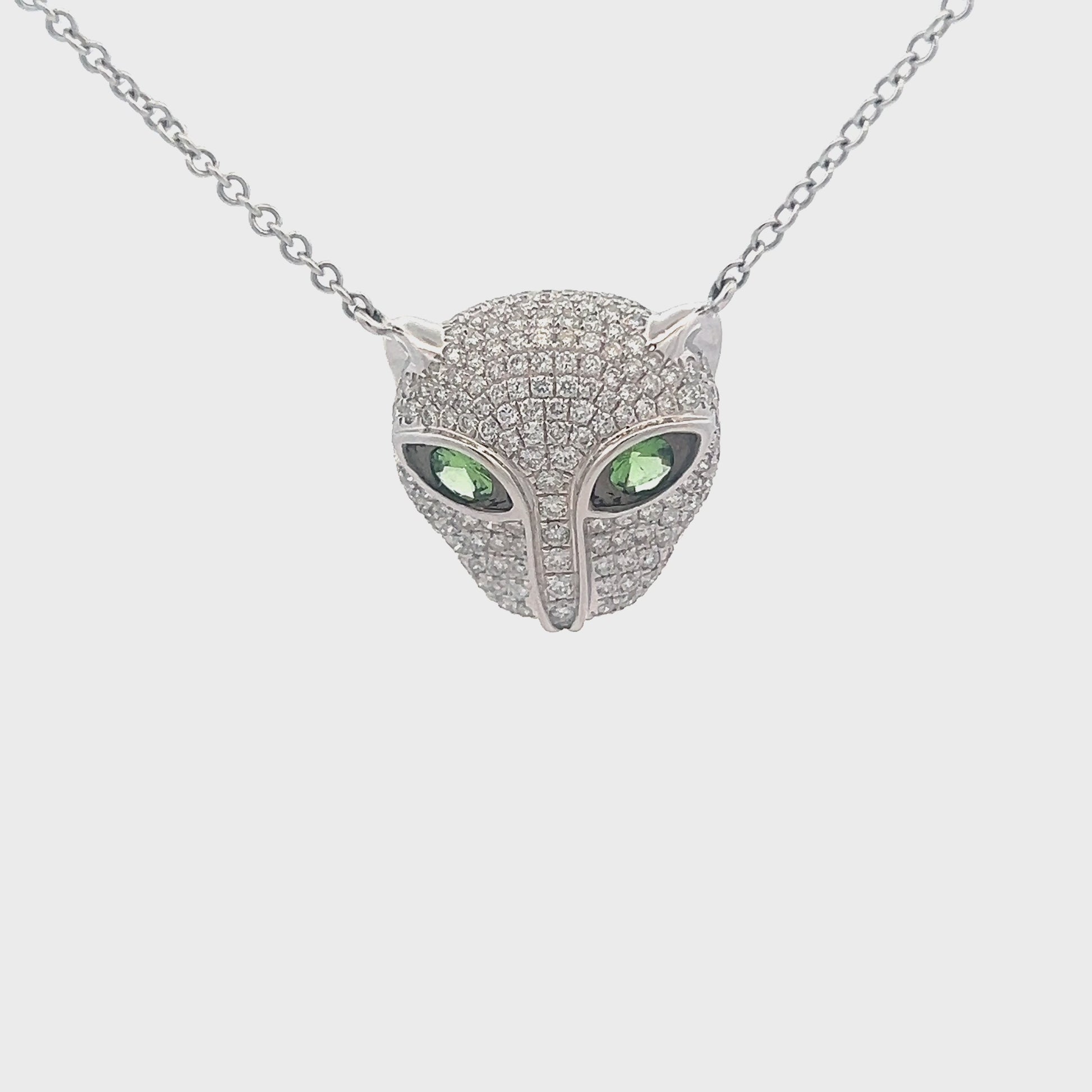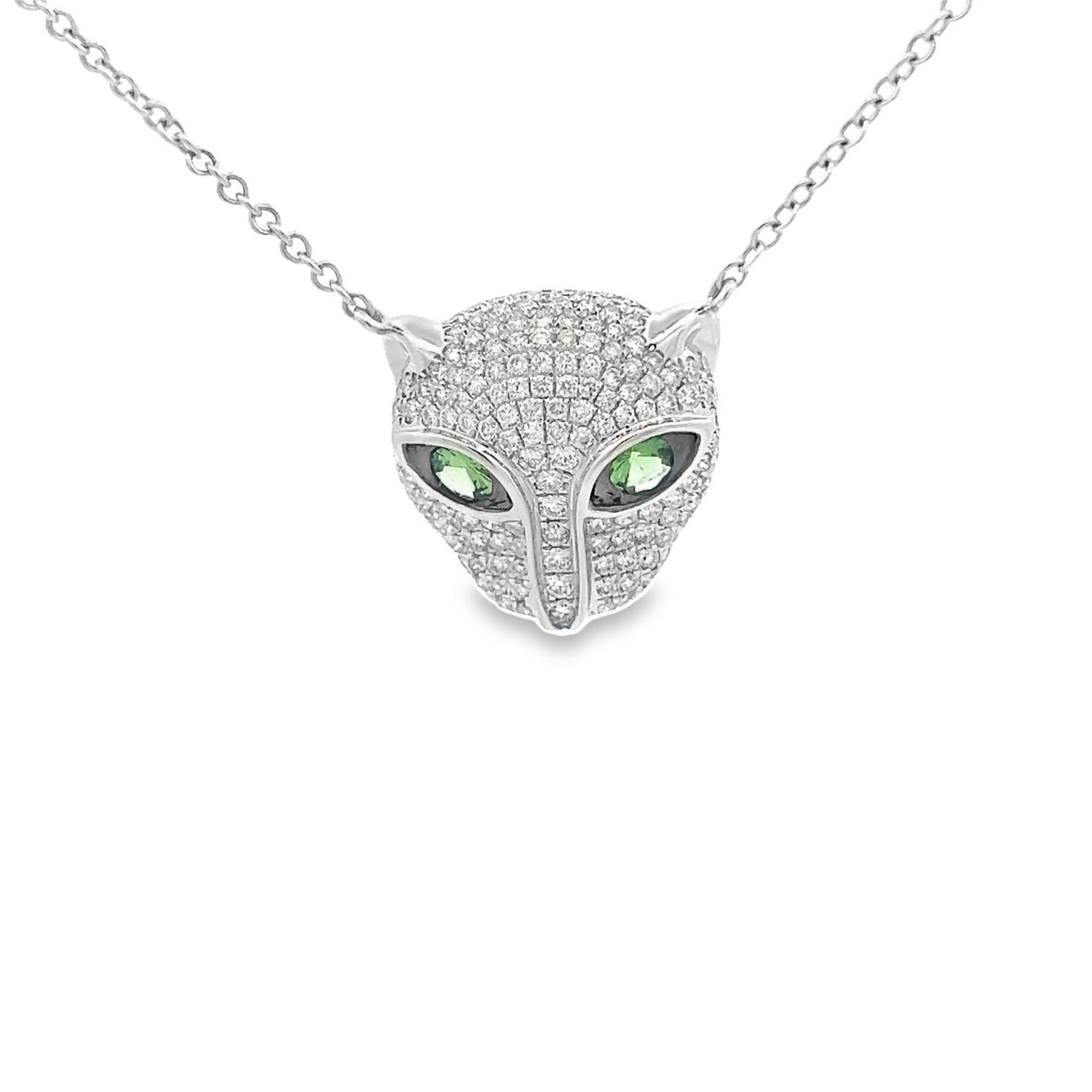 White Gold 18 Karat Panther Necklace with 1.10Tw Rose Cut Diamonds and 2 (0.29Tw) Round Peridots