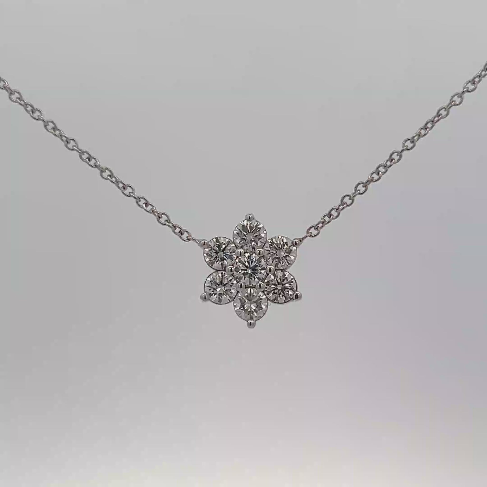Lady's White 18 Karat Large Sydney Cluster Necklace With 7 = 1.75Tw Round Diamonds (4.6gr)