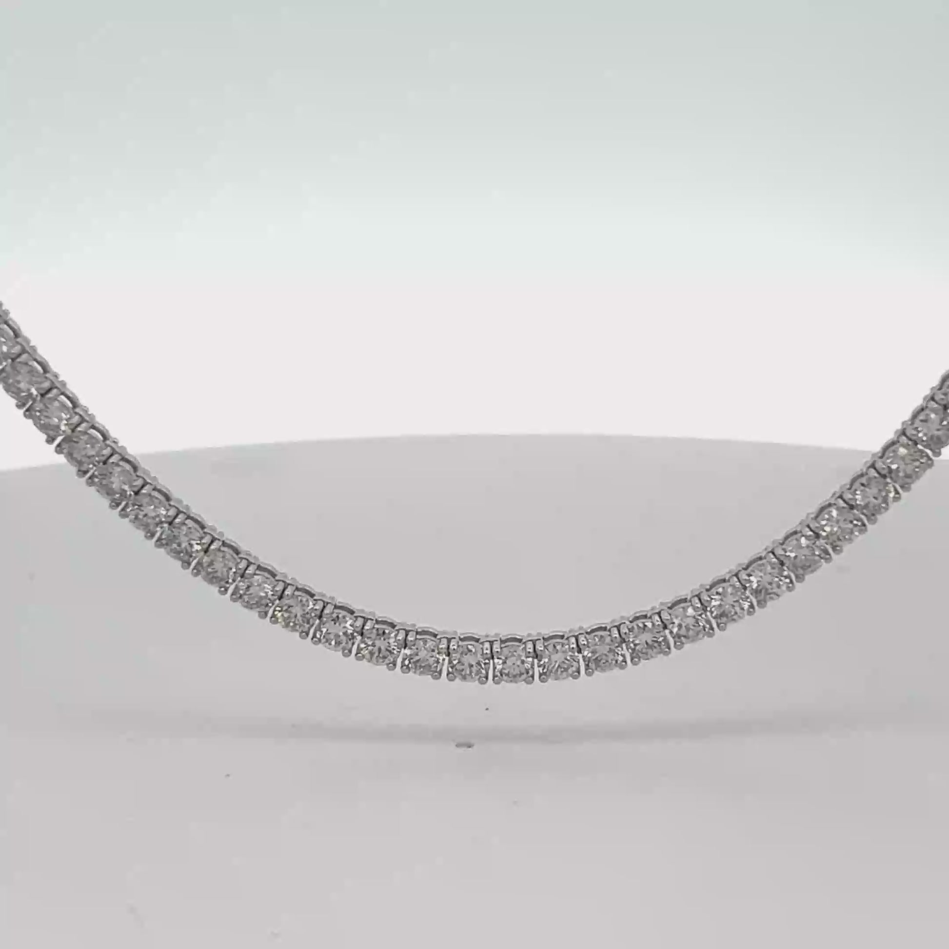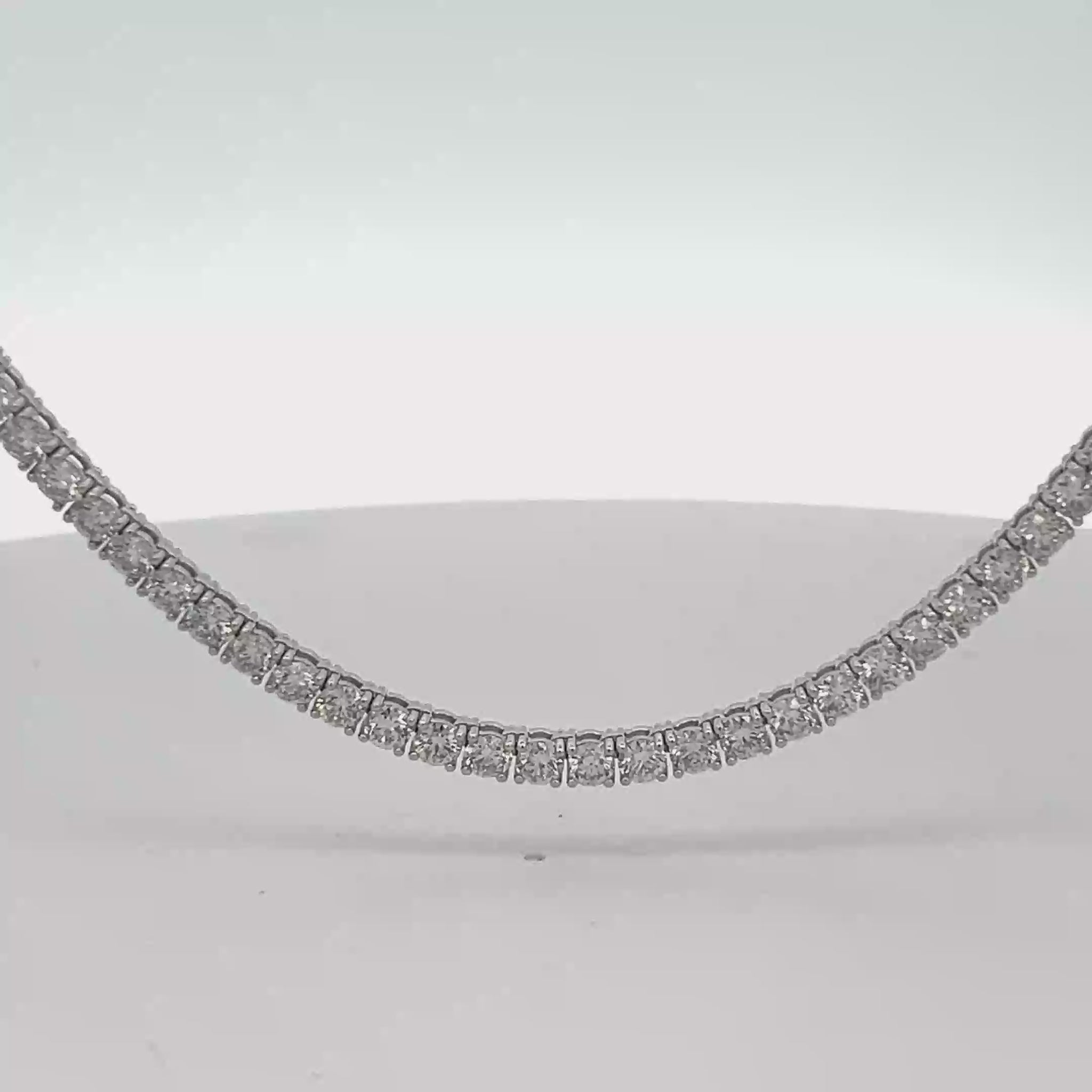 Lady's White 14 Karat Tennis Necklace Length 17" 129=15.20tw Round Diamonds  (23.3gr)
