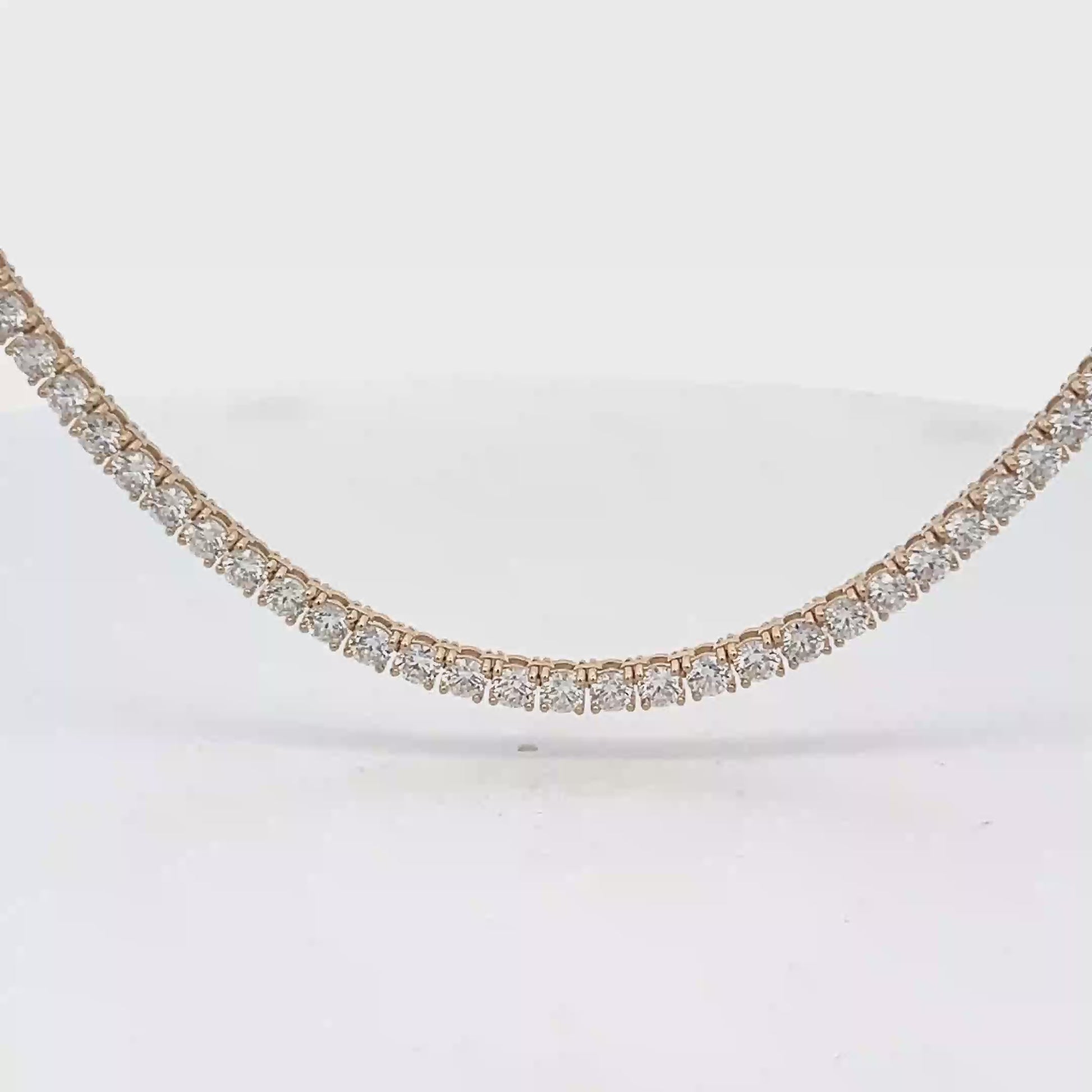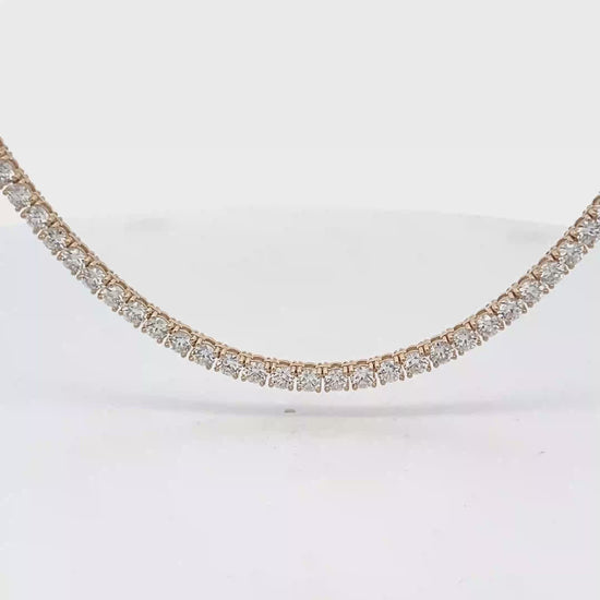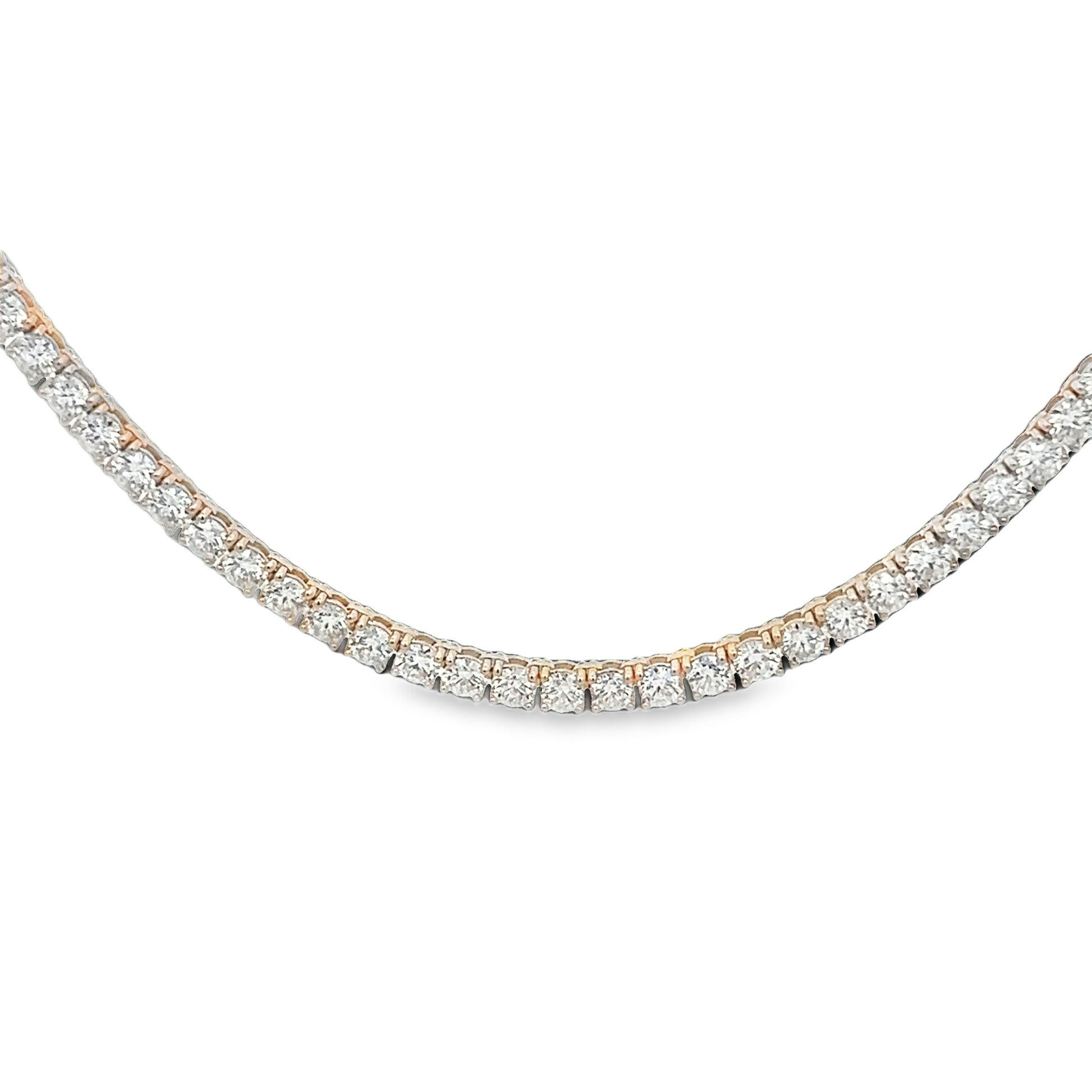 Exquisitely crafted in warm rose gold, this stunning diamond necklace features a continuous line of brilliant-cut diamonds. The precious metal setting accentuates the sparkle of each stone, creating a luxurious and timeless piece that will enhance any ensemble.