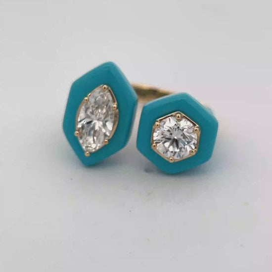 Turquoise Fashion Ring with Marquise and Round Diamond