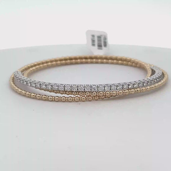 Elevate your style with this set of three exquisitely crafted bangles. Features two yellow gold beaded bracelets and one diamond-set bracelet with brilliant-cut diamonds. The bracelets are meticulously crafted in lustrous gold.