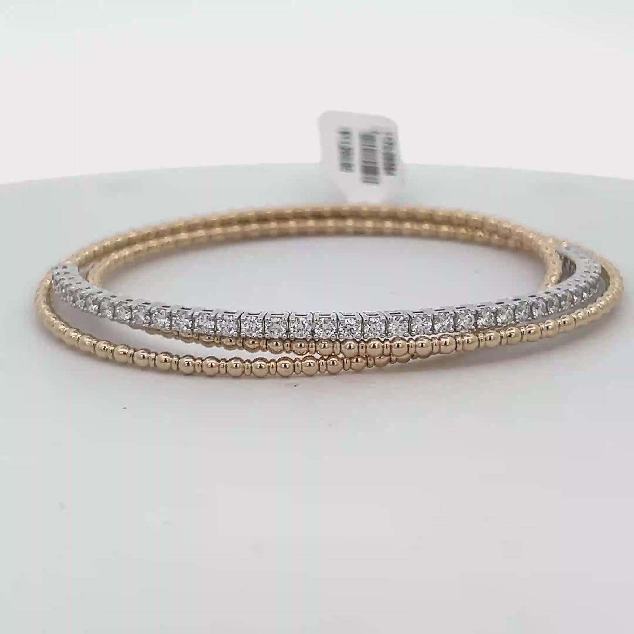 Lady's W&Y 14 Karat Ball And Diamond 3 row Wrap Bracelet With = 1.91Twt Round Diamonds (16.7gr)