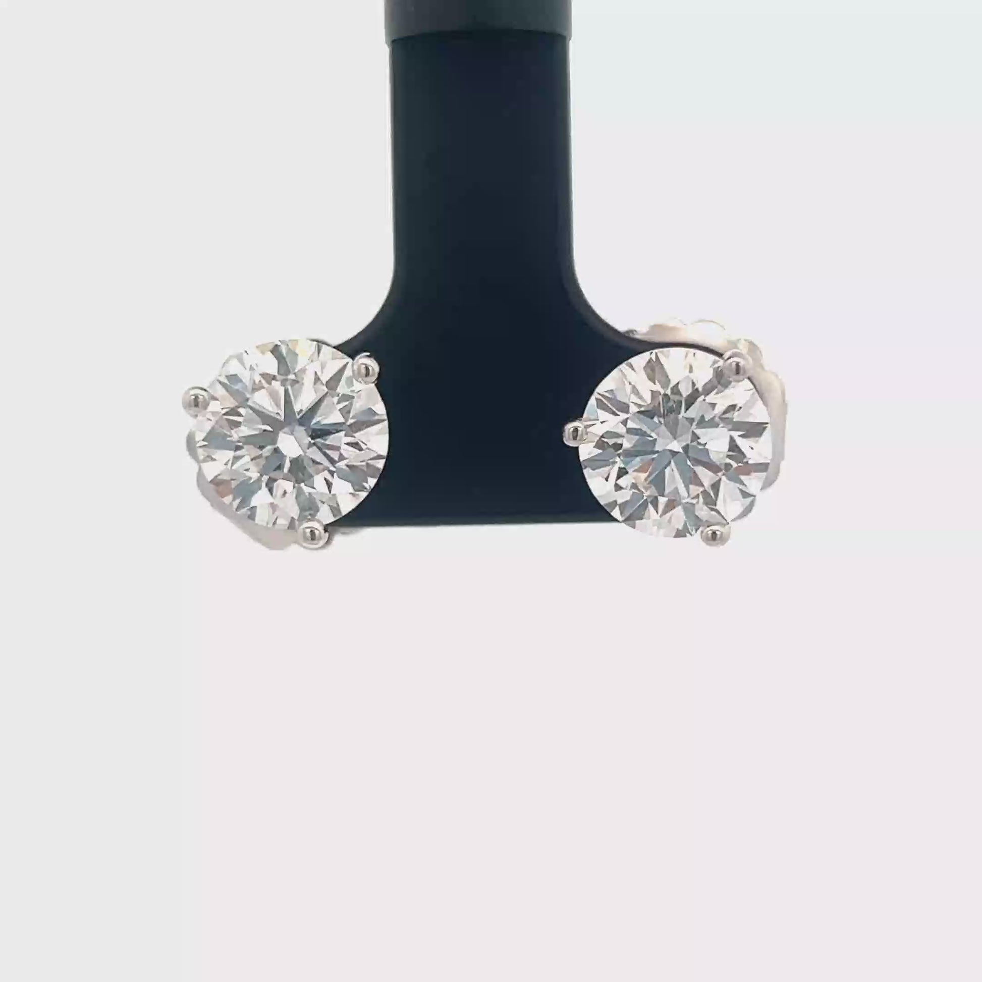 Lady's White 14 Karat Lab Grown Diaond Stud Earrings With One = 2.01Ct Round D Vvs2 Diamond And One = 2.05Ct Round D Vvs2 Diamond