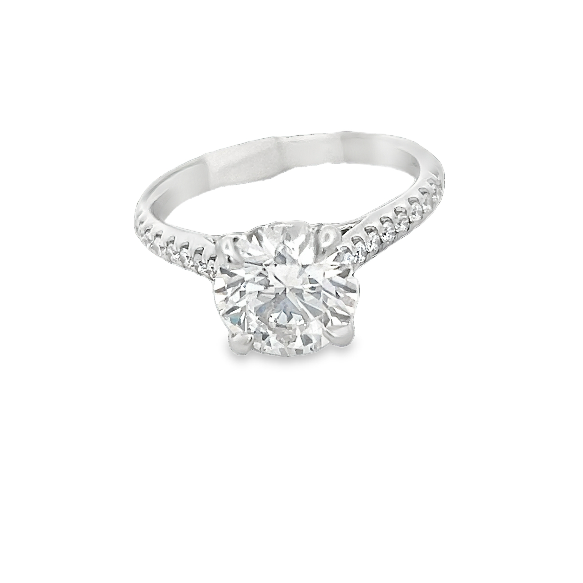 This stunning diamond engagement ring features a brilliant round-cut diamond, elegantly set in a delicate band adorned with sparkling accents. Perfect for making a memorable proposal, this ring symbolizes love and commitment with its timeless design.