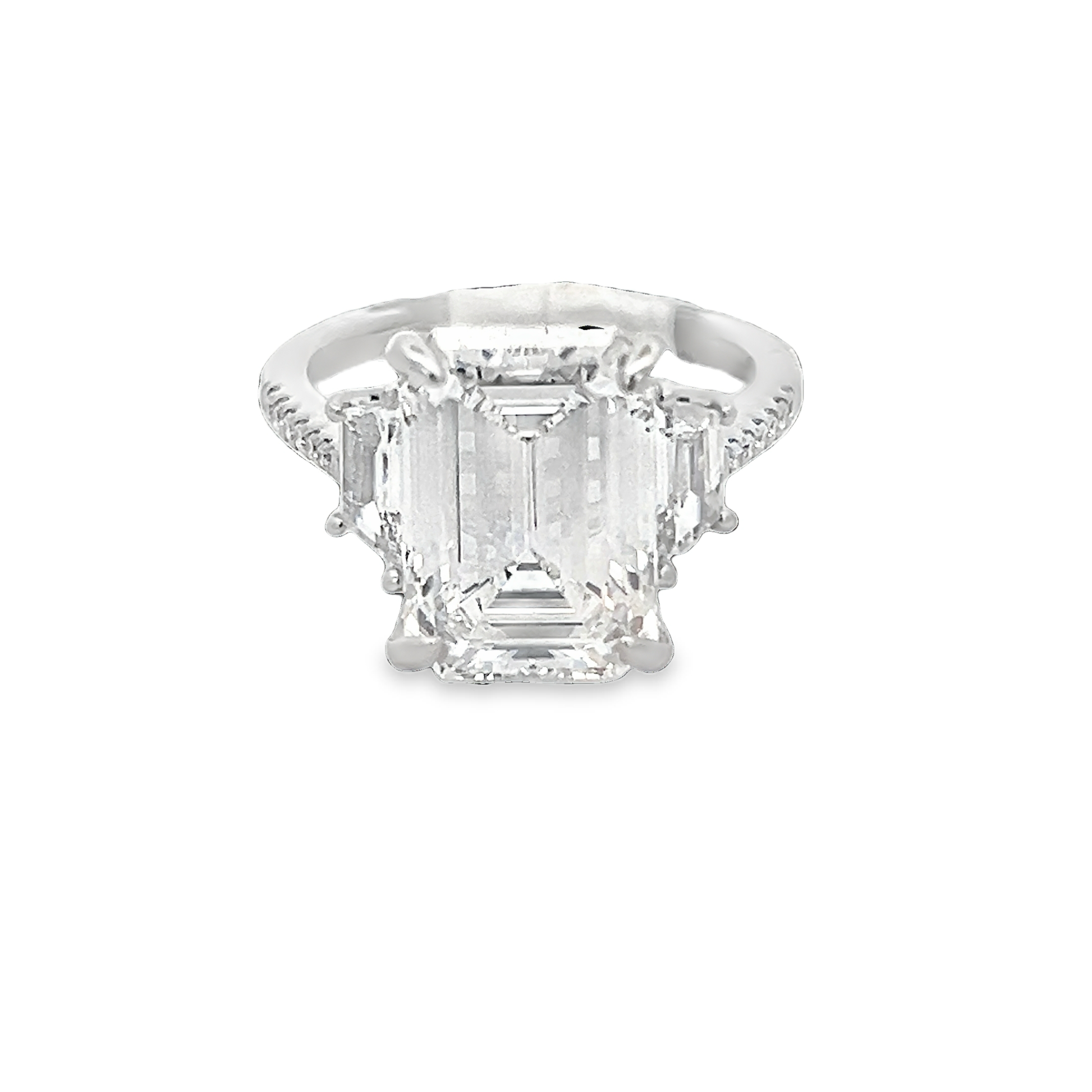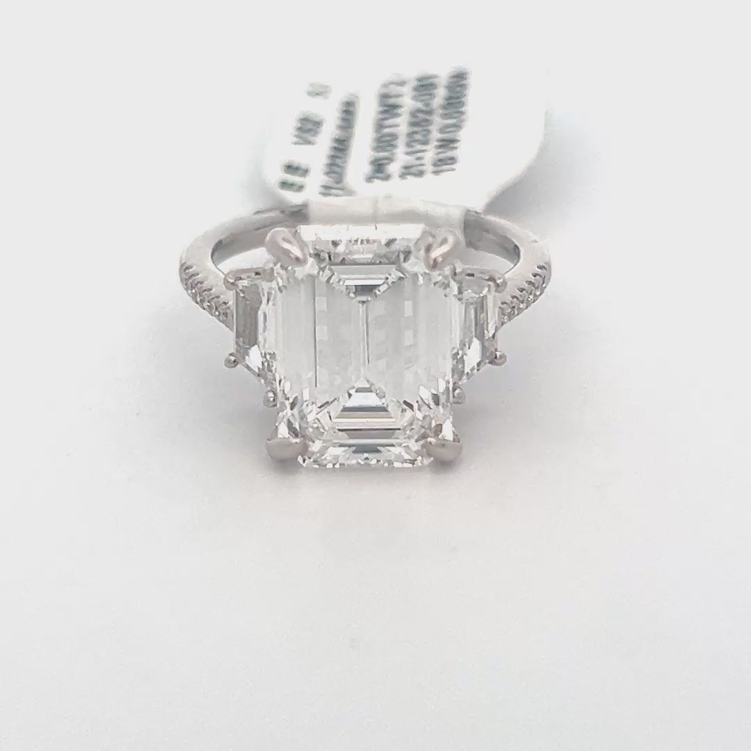 Discover the timeless beauty of this exquisite emerald-cut diamond ring. Crafted with precision, the stunning center stone is complemented by delicate side diamonds, creating a captivating sparkle that catches the eye. Perfect for engagements or special occasions, this ring symbolizes love and elegance