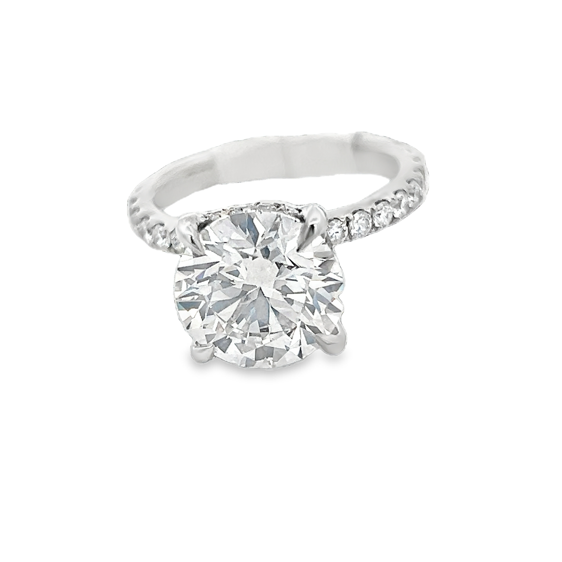 Lady's White 18 Karat Hidden Halo Engagement Ring With 36=0.74Tw Round Diamonds (4.3gr)
