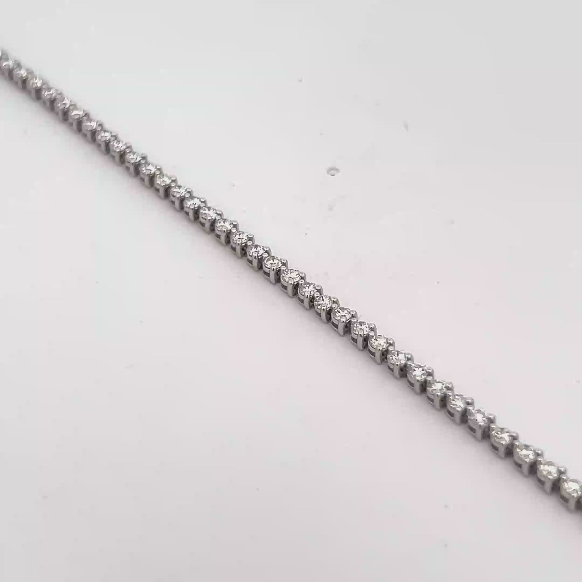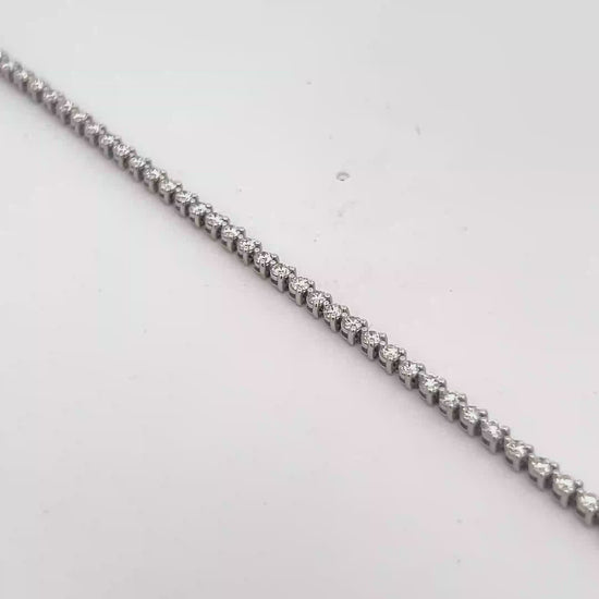 Elevate your style with this exquisite platinum tennis bracelet featuring a continuous stream of round cut brilliant diamonds. The white gold setting enhances the dazzling sparkle, creating a timeless piece of refined elegance and sophistication. Perfect for any occasion, this bracelet adds a touch of luxury to your ensemble.