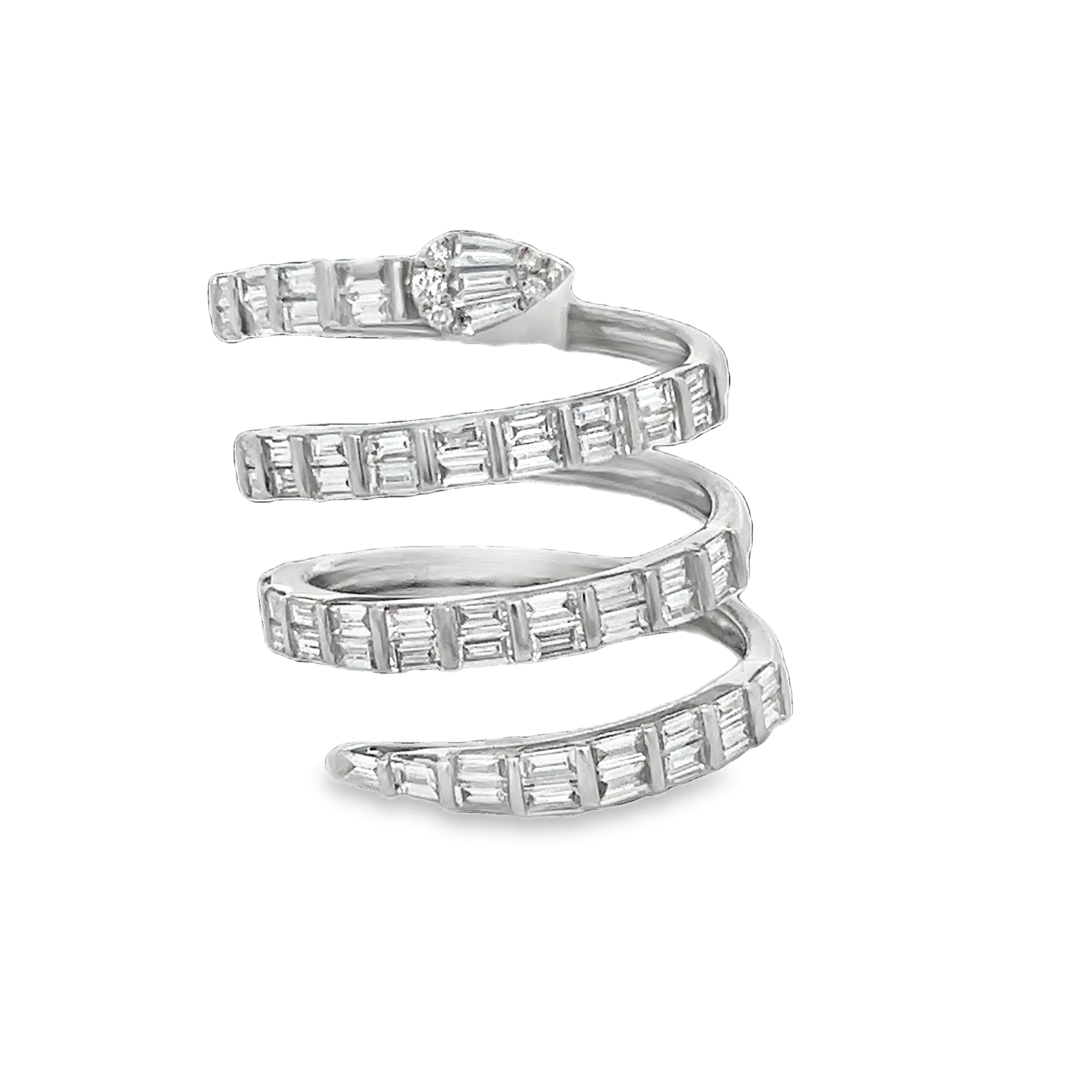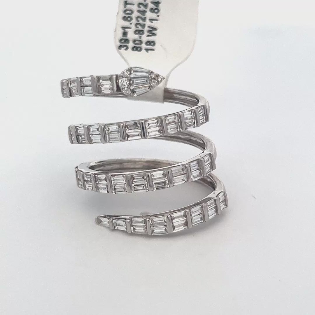Lady's White 18 Karat wrap Fashion Ring With 39=1.60Tw Baguette Diamonds And 6=0.04Tw Round Diamonds (6gr)
