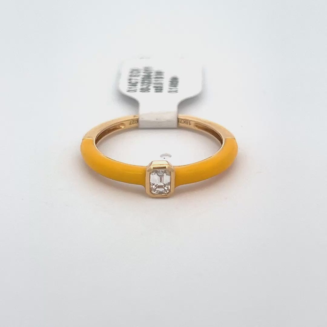 Yellow Enamel and Diamond Ring