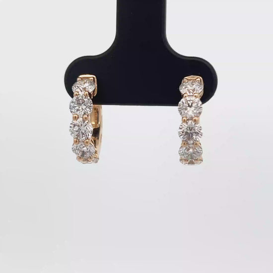 Elevate your everyday style with these exquisite rose gold hoop earrings. Crafted from lustrous gold, these earrings feature a timeless design. The brilliant round cut diamonds add unparalleled sparkle and radiance to these captivating hoops. A perfect blend of classic elegance and modern sophistication.