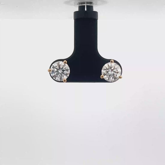 Lady's Yellow 18 Karat Lab Grown Diamond Stud Earrings With One = 1.02Ct Round D Vvs2 Diamond  igi cert #607328848 And One = 1.02Ct Round D Vvs2 Diamond igi cert #608359431