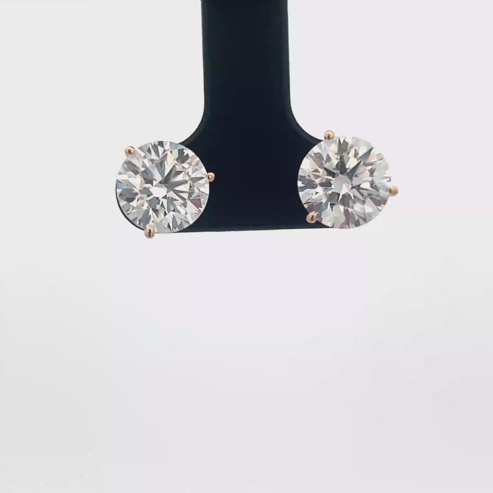 Lady's Yellow 14 Karat Lab Grown Diamond Stud Earrings With One = 2.09ct Round D Vvs2 Diamond  igi cert #626431639 And One = 2.09Ct Round D Vvs2 Diamond igi cert #668429881