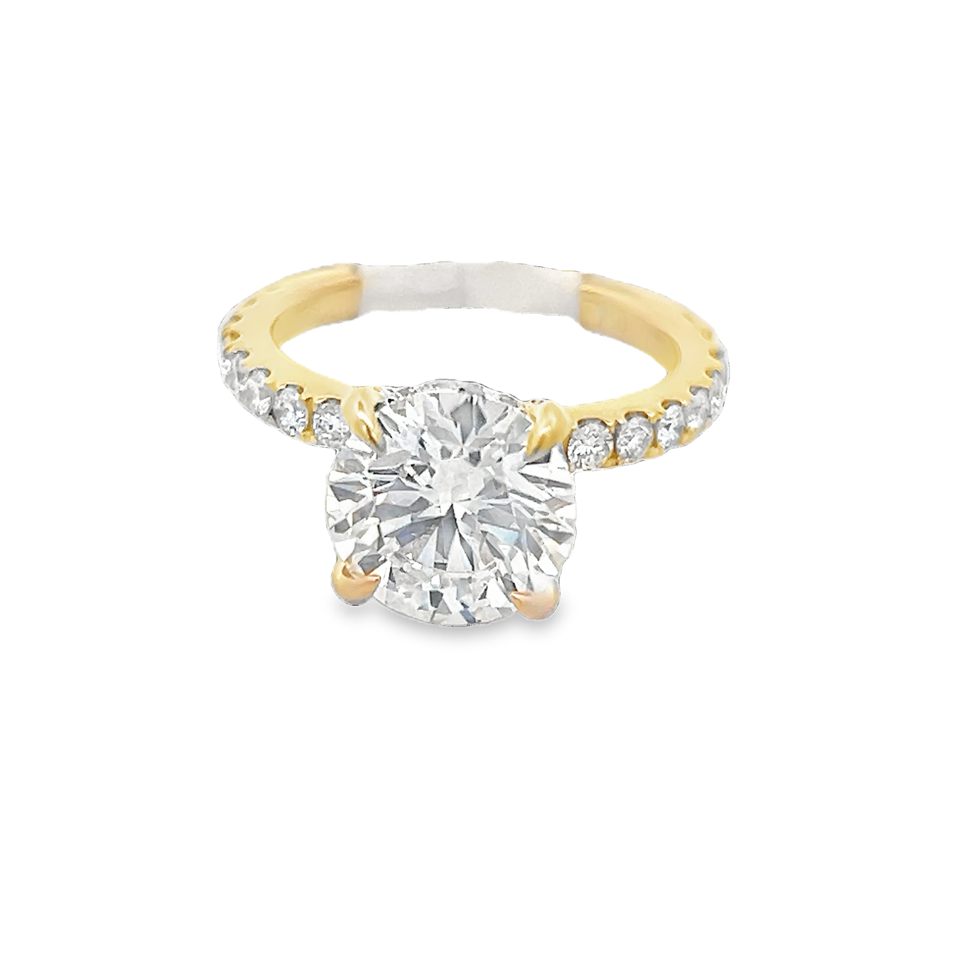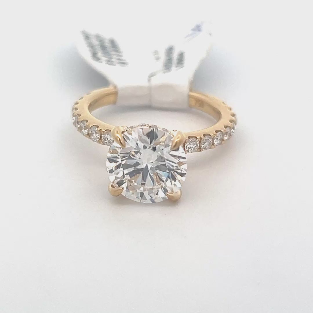 This stunning diamond engagement ring features a brilliant round-cut center stone, surrounded by a delicate band adorned with smaller diamonds. Crafted in luxurious gold, it symbolizes love and commitment, making it the perfect choice for that special moment.