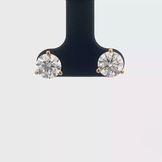 Lady's Yellow 18 Karat Lab Grown Diamond Stud Earrings With One = 1.28Ct Round D Vvs2 Diamond  igi cert #628483028 And One = 1.27Ct Round D Vvs2 Diamond igi cert #688508349