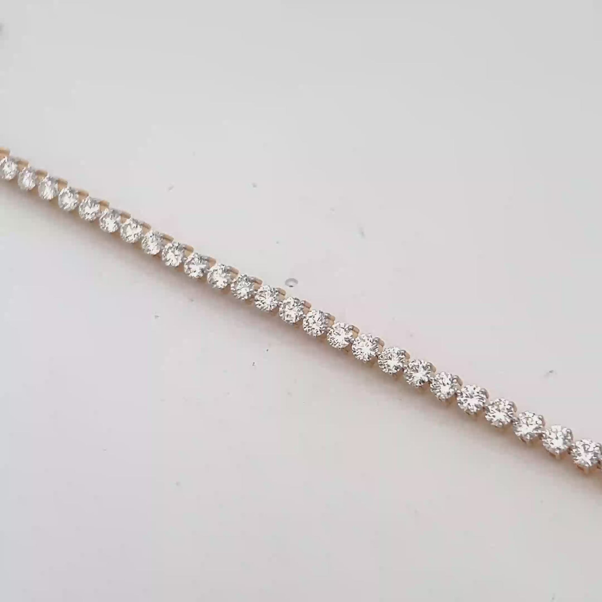 Elevate your ensemble with this refined tennis bracelet, featuring brilliant round cut diamonds set in a lustrous rose gold base. The bracelet exhibits a seamless arrangement of stones, enhancing its sparkle and creating a timeless, elegant aesthetic, ideal for adding a touch of luxury to any occasion.