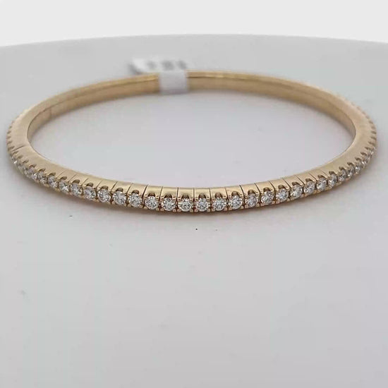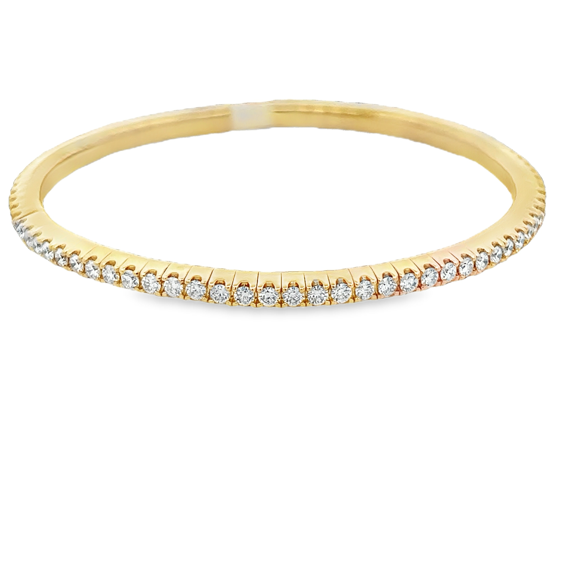 Elevate your style with this exquisite yellow gold bangle, meticulously crafted with a row of brilliant-cut diamonds. The seamless design and timeless elegance of this bangle make it a perfect accessory for both everyday wear and special occasions.